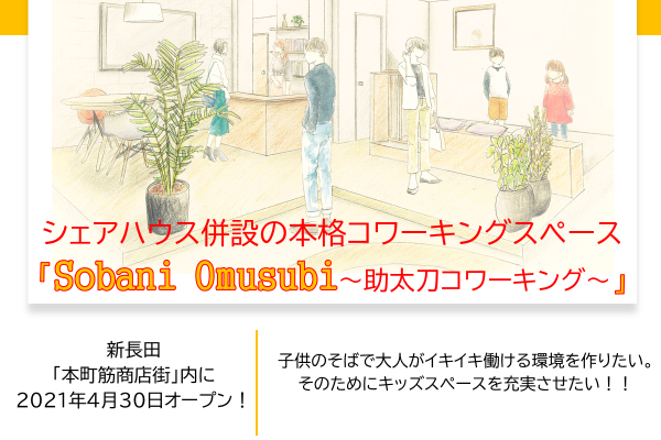Sobani Omusubiのキッズスペース利用によって、子供たちが社会との繋がりを深めながら成長しますように。そして、多くの輝く大人との繋がりが、子供たちの未来をより輝かせられますように。