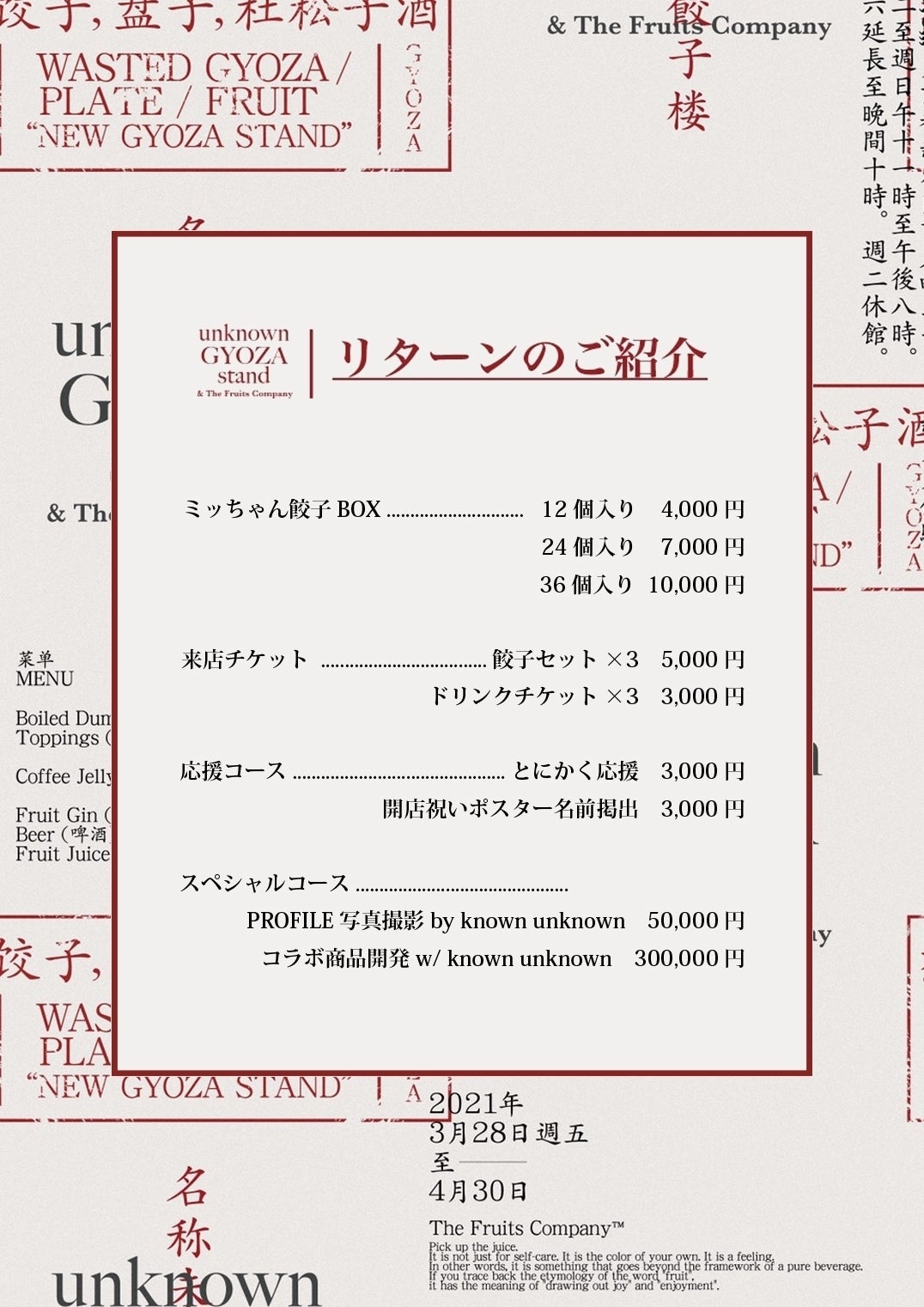 「unknown GYOZA stand」 でしかできない体験を提供していきたいです。