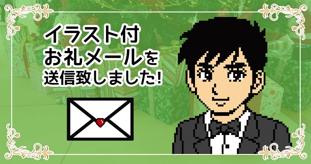 お世話になっております。この度はクラウドファンディングプロジェクトご支援頂き誠にありがとうございました。この度、クラファンリターンの1つ「キャラクターイラスト付お礼メール」をご支援者さま全員にキャンプファイヤーのメッセージからご送信させて頂きました。今年も皆様からの応援を沢山頂きました。ありがとうございました!画像データをURLよりダウンロードをお願い致します。*本URLはダウンロード有効期限(12/31迄)がございますので、期日までに必ずDLを行って頂ますようよろしくお願い致します。それでは、引き続き、ミステリー案内シリーズ及び弊社をよろしくお願い致します。最後にもう一度、この度はご支援をありがとうございました!追記12/25(土)にミステリー案内ファン感謝祭をオンラインで実施致します。詳細は下記のリンクからご確認下さい。尚、参加料は無料です。お時間あれば是非ご参加下さい。ミステリー案内ファン感謝祭!『凍える銀鈴花』配信1周年記念!X'masパーティー2021!※イベントの性質上人数制限がございます。お申し込みは先着順とさせて頂きますご理解とご了承下さい。Happy Holidays!ハッピーミール株式会社代表取締役社長/「ミステリー案内シリーズ」プロデューサー 関純治