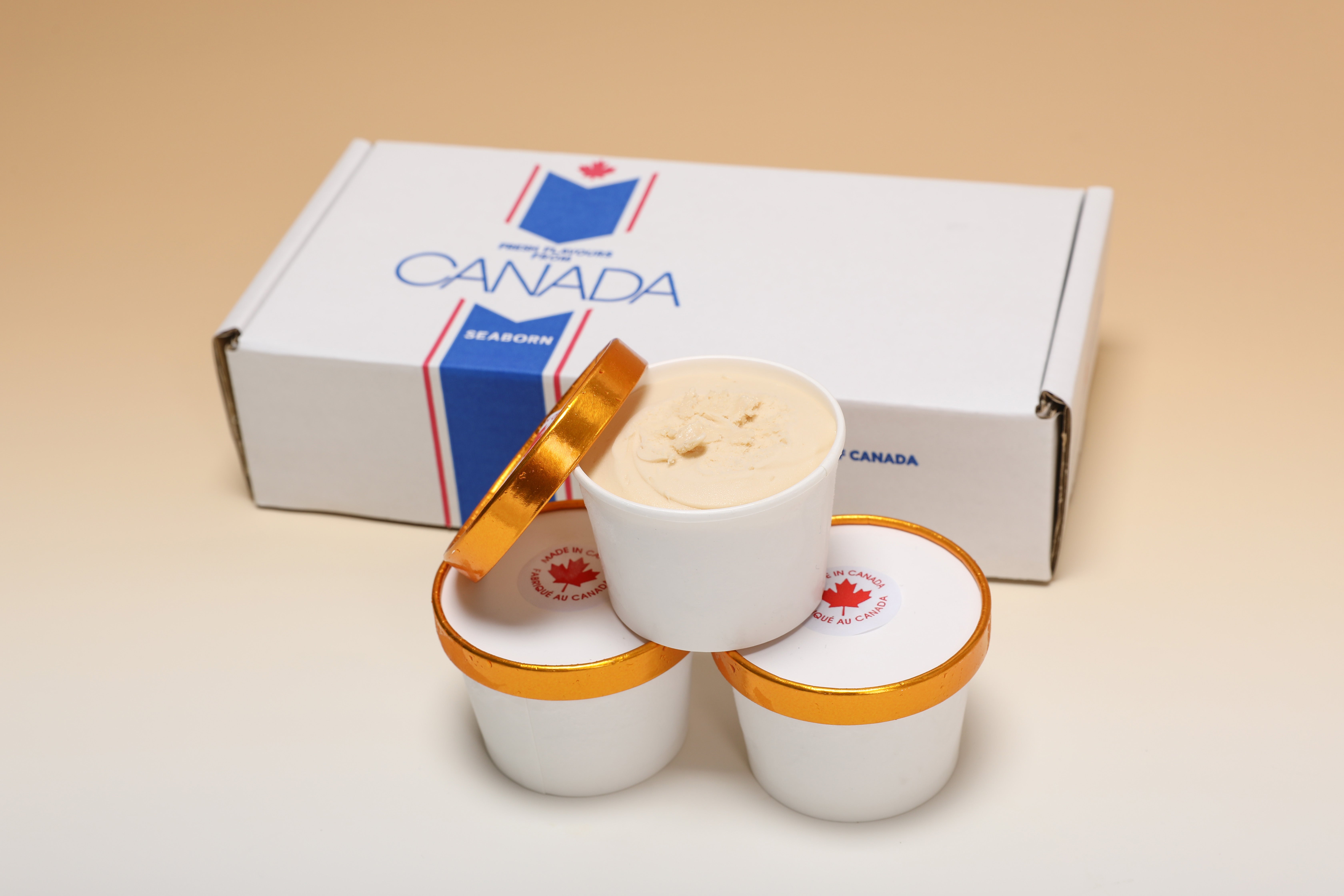 100%カナダ産メープルシロップを贅沢に使用しました。少し溶かして、メープルシロップをかけて食べるとより濃厚さが増します。パンと一緒に食べても相性バツグンです。(アレルゲン:乳、卵、大豆)