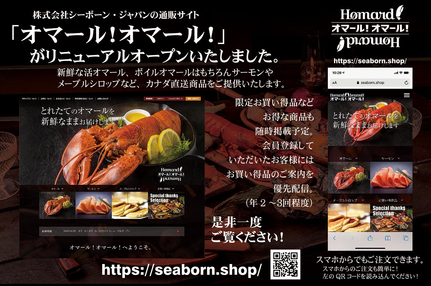 主に高級食材のオマール海老やメープルシロップなどを取り扱い、30年間、全国各地のお客様に自信をもって商品をご提供しています。