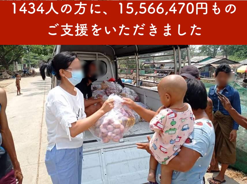 クラファン発起人代表の田村です。ミャンマーでの食糧配布をご支援頂いた皆様に、大変嬉しいお知らせがございます。この度、過去1年間に実施された約14000件のプロジェクトの中から100件のみが選ばれる「CAMPFIRE クラウドファンディングアワード2021」に選出頂きました。https://award.camp-fire.jp/2021/皆様から頂戴したお気持ちとご支援が、ミャンマーの人々の助けとなるだけではなく、日本社会での評価に繋がったことを、大変嬉しく、また感謝しております。ご存知のように、ミャンマー現地の状況は悪化し続けており、皆様も胸を痛めておられるだろうと想像致します。一方で日本での報道は減り続け、関心が薄れていくことも危惧されています。ミャンマーの友人たちからは、「何よりもミャンマーで起こっていることに関心を持ち続けてほしい」と何度も言われ、その度に胸が苦しくなる思いでした。そのようなタイミングでの選出でしたので、これを機会にミャンマーで起こっていることに対して少しでも関心を持って頂くべく、運営メンバー一同、全力で投票キャンペーンを行うことに致しました。ご支援者の皆様には、ぜひ下記の要領で投票による応援をお願いできますと幸いです。ーーーーーーーーーーー①下記リンクをクリックhttps://camp-fire.jp/projects/view/394551②キャンプファイヤー公式アカウントをフォロー※Twitterアカウントをお持ちでない方は、お手数ですが作成をお願いできますでしょうか。③「投票する」ボタンからツイート投票(完了!)ーーーーーーーーーーー◆現在の活動状況について当初の予定では、この時期にはご寄付頂いた全額分の支援を完了している予定でした。計画が遅れていること、お詫び申し上げます。1500万円の内、残すはすでに約200万円となっております。現地での支援ニーズは非常に大きく、我々の規模でできることは本当に少ないことを痛切に感じています。一方で、ここ1・2ヶ月の現地の実際の為替レートの変動が非常に大きく、皆様からお預かりした大切な支援金の効果を最大化(チャット安のタイミングで送金し、より多くの食糧を購入)するため、残金の送金をしばらく見送り、状況を見極めているところです。来年頭には支援もひと段落するかと思われますので、改めて報告書を公開できればと思っております。年内には、細くても長く継続的なミャンマー支援を行うために、キャンプファイヤーのコミュニティ機能を活用した支援体制に向けて動いておりますので、そのご報告もまたできればと思っております。改めましてこれまでのご支援に感謝するとともに、今後も皆様とともにミャンマー支援を継続していければと思っております。これからも、どうぞ宜しくお願い致します。田村啓※写真は最近の現地の活動の際に撮影