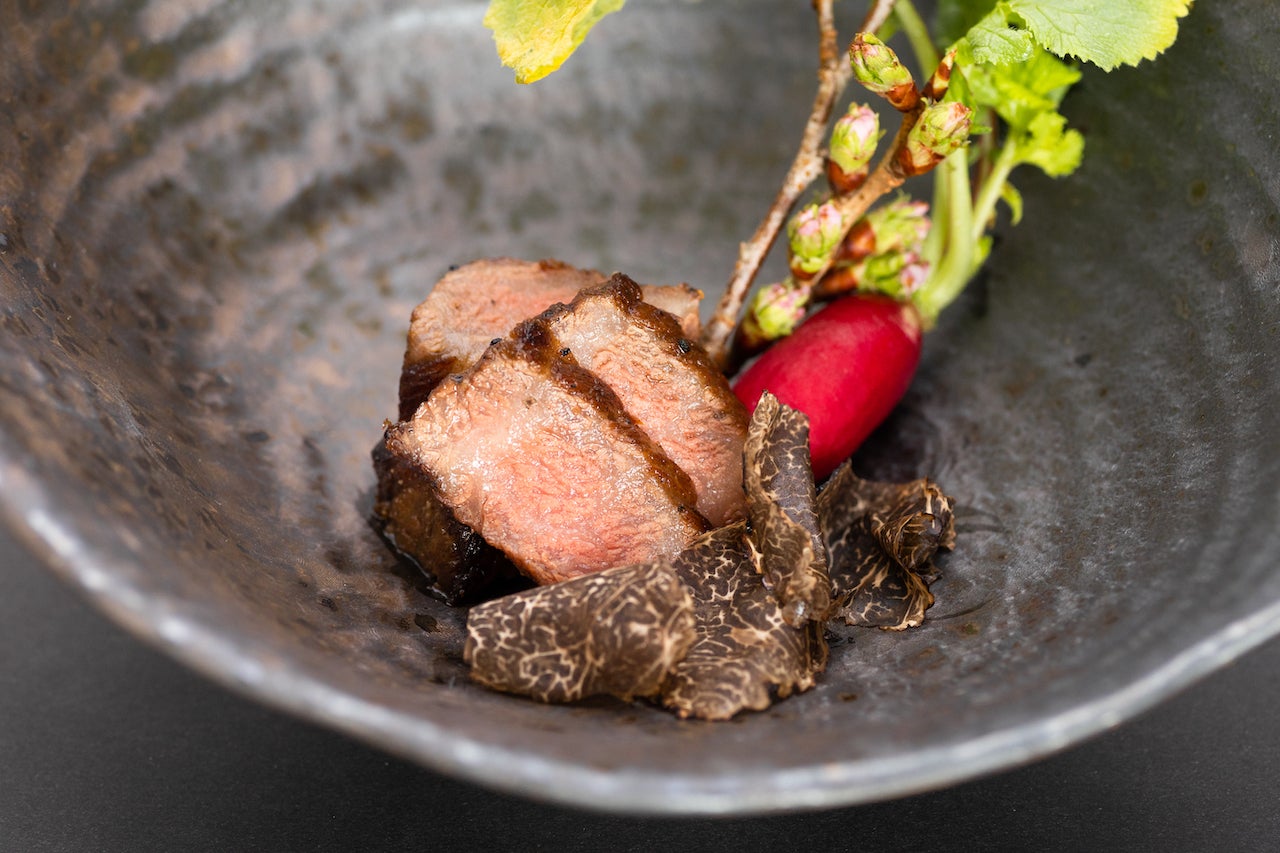 コースは、厳選された和牛をはじめ、フカヒレや鮑、フォアグラ等をそれぞれの調理法でお楽しみいただけるコースとなっており、お料理に合わせてご自身の好きなタイミングで好きな量だけマイトリュフを削って魅惑的な香りとお料理に酔いしれてみてください。