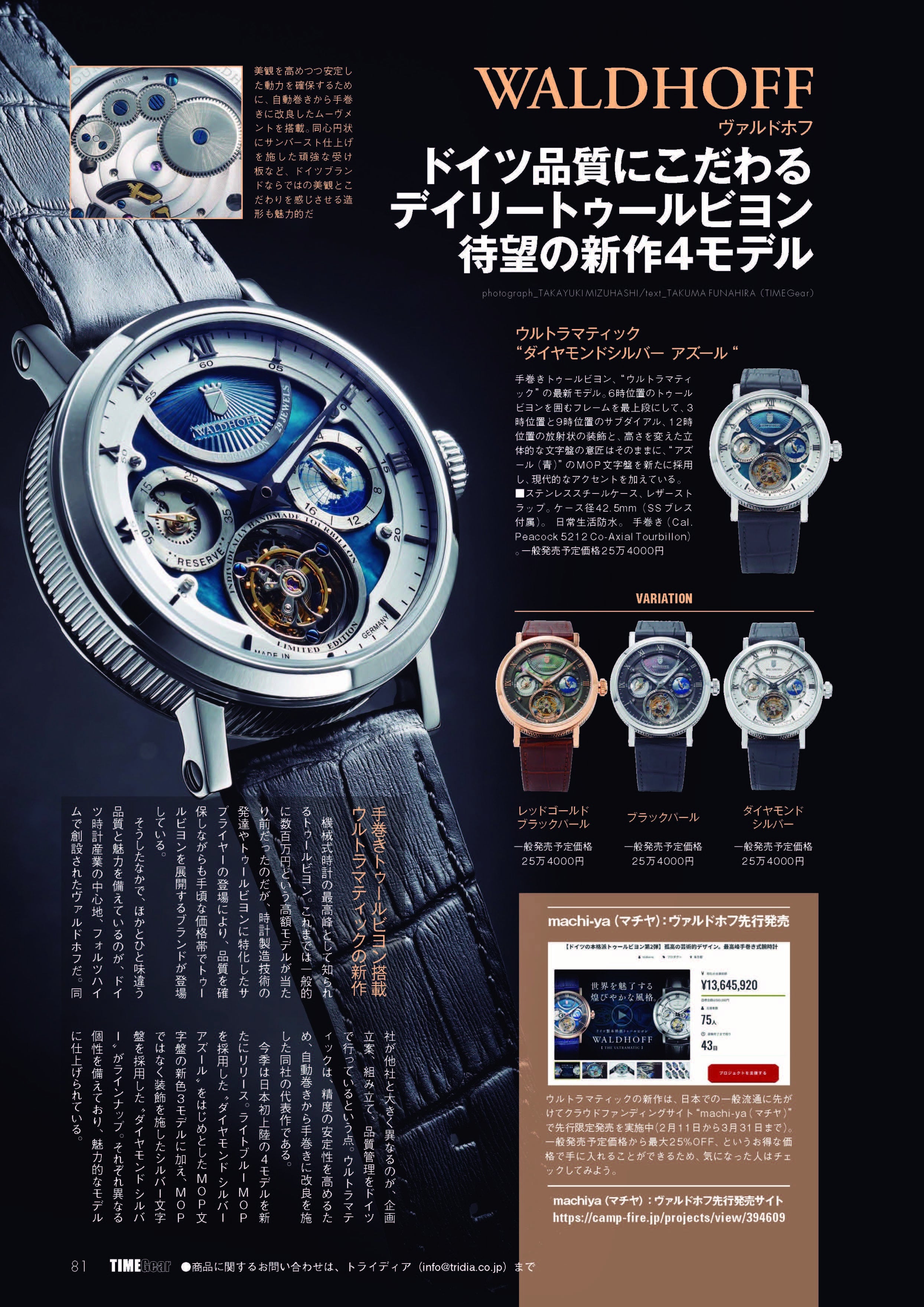お陰様で皆さまの温かい支援の輪が広がっており、先日発売の時計専門雑誌『TIME Gear』にてWALDHOFF特集を掲載していただきました。