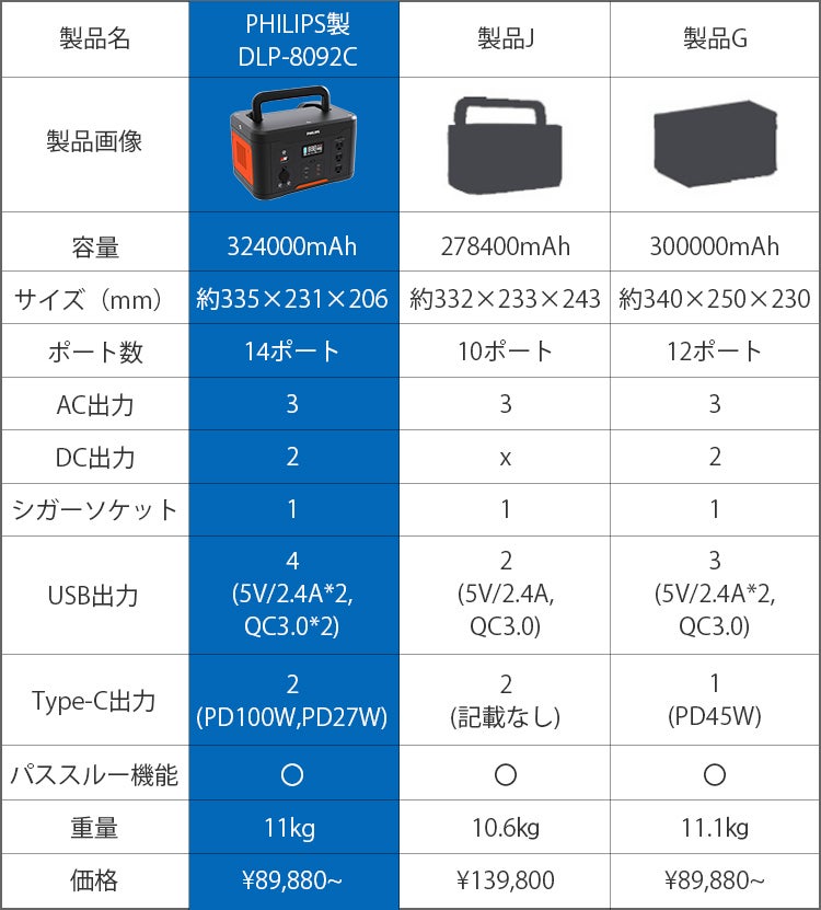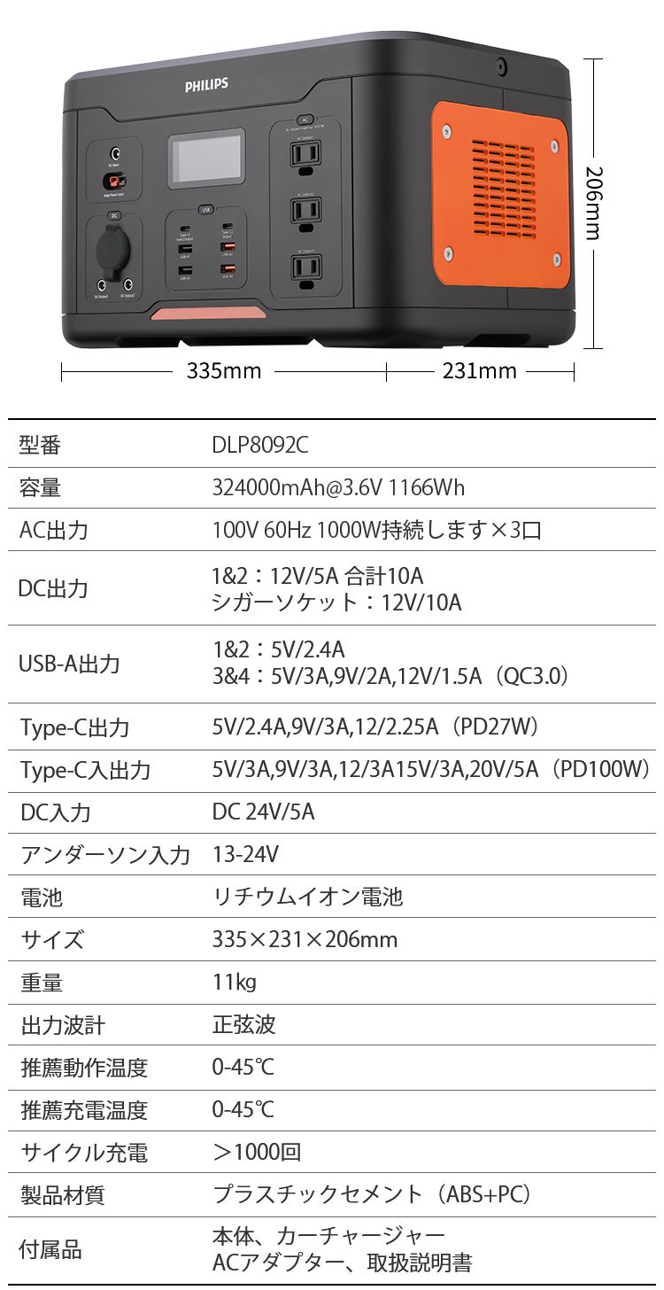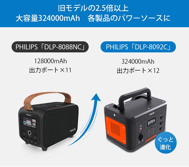 多くの方々からの要望に応え、PHILIPS社からついに大容量324000mAhのポータブル電源「 DLP-8092C」登場!