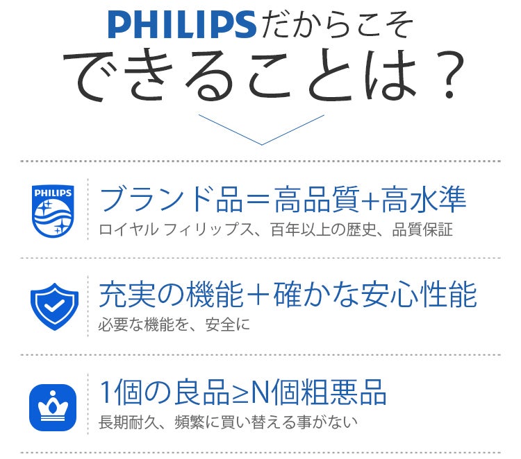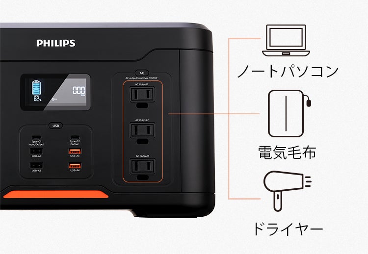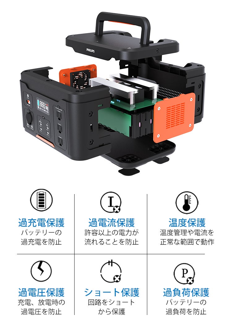たくさんの製品に給電中、心配になるのが過熱やショートといったトラブル。大容量の電気を扱う製品だからこそ、安心できるPHILIPSのブランド力が活きてきます。