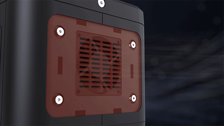 冷却ファンが製品の左右に内蔵されており(右:吸い込み口、左:吹き出し口)、製品の温度が40℃に達すると自動で回転し、速やかに排熱。ポータブル電源やバッテリー特有の、あの不吉な過熱を防止します。