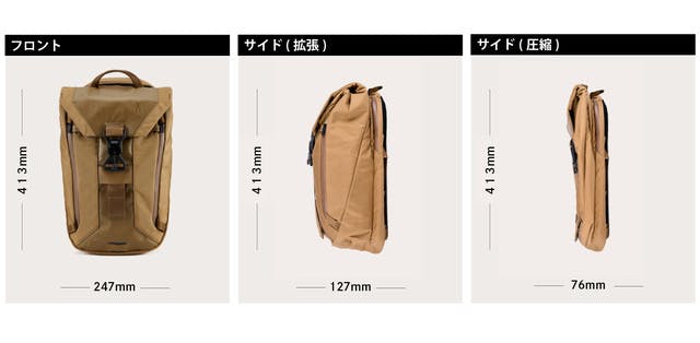 拡張機能にも工夫があります。マグネット式の拡張機能によりスタイリッシュな見た目を保ち続けることが可能です。試行錯誤を重ね完成したこのデザインは、通常の拡張型バックと異なり段階的に必要な分だけ拡張していくため、無駄にだぶついた印象を与えることもありません。