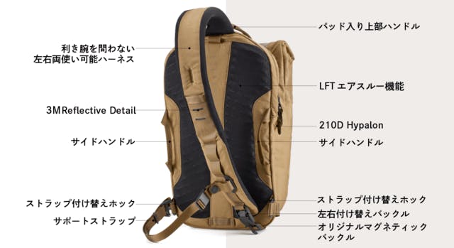 Arclite Slingは、多様なシーンでの使い勝手を向上するために、実に20以上の機能が搭載されています。