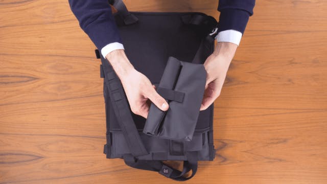 アスティブシーンではより体に密着させるメッセンジャーバックに変形。