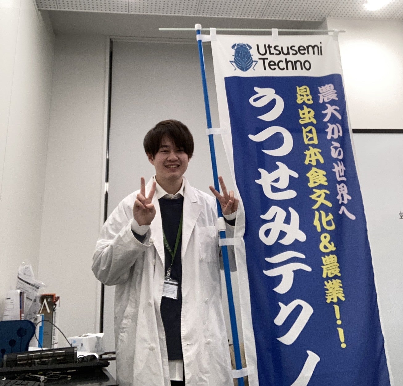 はじめまして。私は東京農業大学の学生ベンチャー・うつせみテクノ代表の秋山大知と申します。現在東京農業大学の4年生で大学院進学を予定しており、日々勉強や卒業研究を行っています!