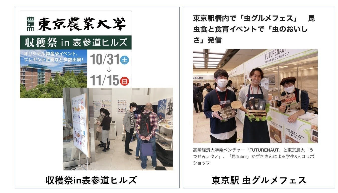 また、昆虫食のハードルが高い一つの原因として購入できる場所が少ないということもありますので、弊社ECサイト:うつせみ Agri-Portでの販売や農大アンテナショップ(世田谷代田)に未来食ガチャ(昆虫食ガチャガチャ)を設置、また身近な食とつながりのある商店街の中に昆虫食自動販売機を置くことで昆虫食に触れることができる機会を増やしていきたいと思っています!
