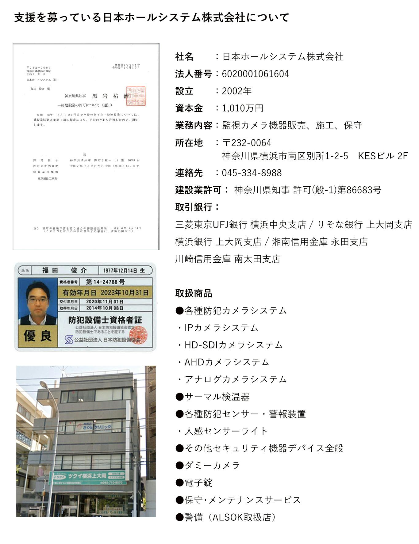 私達は神奈川県横浜市南区にて防犯カメラ販売・設置を行う、日本ホールシステムと申します。防犯カメラの技術を応用したサーマル検温器を取扱っており、昨今の感染症対策用に販売・設置をしております。弊社には小学生の子を持つママさん社員が複数在籍しており、代表も4児のパパとして日々感染防止対策をしながら子どもたちを学校に送り出しています。感染症対策で学校の先生方や学校関係者の皆様が通常業務以外で一生懸命に動いてくださっている姿を知っていることから、弊社で取扱っている検温器を役立ててほしい!と社員達の中から声があがり、代表も「まずは子どもたちを感染症から守ろう!」と社をあげて教育機関への検温器寄贈を計画することになりました。