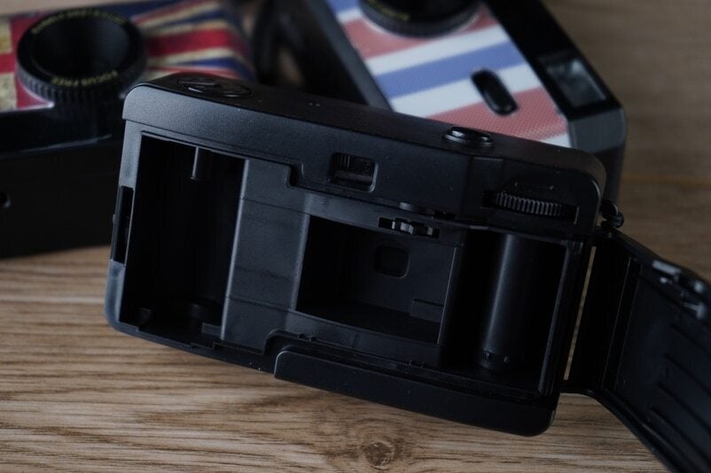 他のインスタントカメラに比べて無駄な機能を完全に排除しているため、見た目はスタイリッシュで携帯性が高い仕様になっています。シャッターの切替えもフィルムの巻取りも手動の完全アナログ式、電池を使わない完全手動式インスタントカメラです。