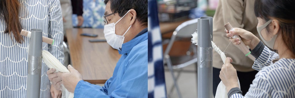 そこでは、体験では職人さんが普段から働く工場や、日常的に使う道具を用いて教えてくださいます。普段私たちが目にする有松・鳴海絞りの商品ができるまでには、一人ひとりの職人さんたちが加工を施し、素材と向き合ってをものづくりをされているんだということを目の当たりにする参加者からは「伝統工芸品として有名な有松絞りがどのようにつくられているかよく解りました」という声などを頂いています。