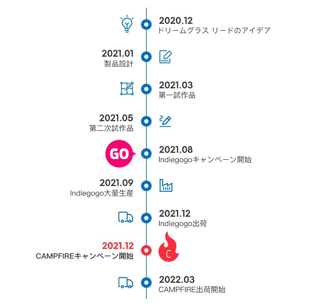 過去の成功したキャンペーンと出荷経験のおかげで、大量生産のベテランとなりました。今回は過去の経験を踏まえてすでにかなり先の段階まで進めており、試作は開始されています。また、来月から量産を開始する予定です。キャンペーン終了後3ヶ月以内に発送ができない場合には、理由不要の返金オプションをご提供いたします。 (返金方法はCAMPFIREは関与せず、プロジェクトオーナーによる直接返金となります。)