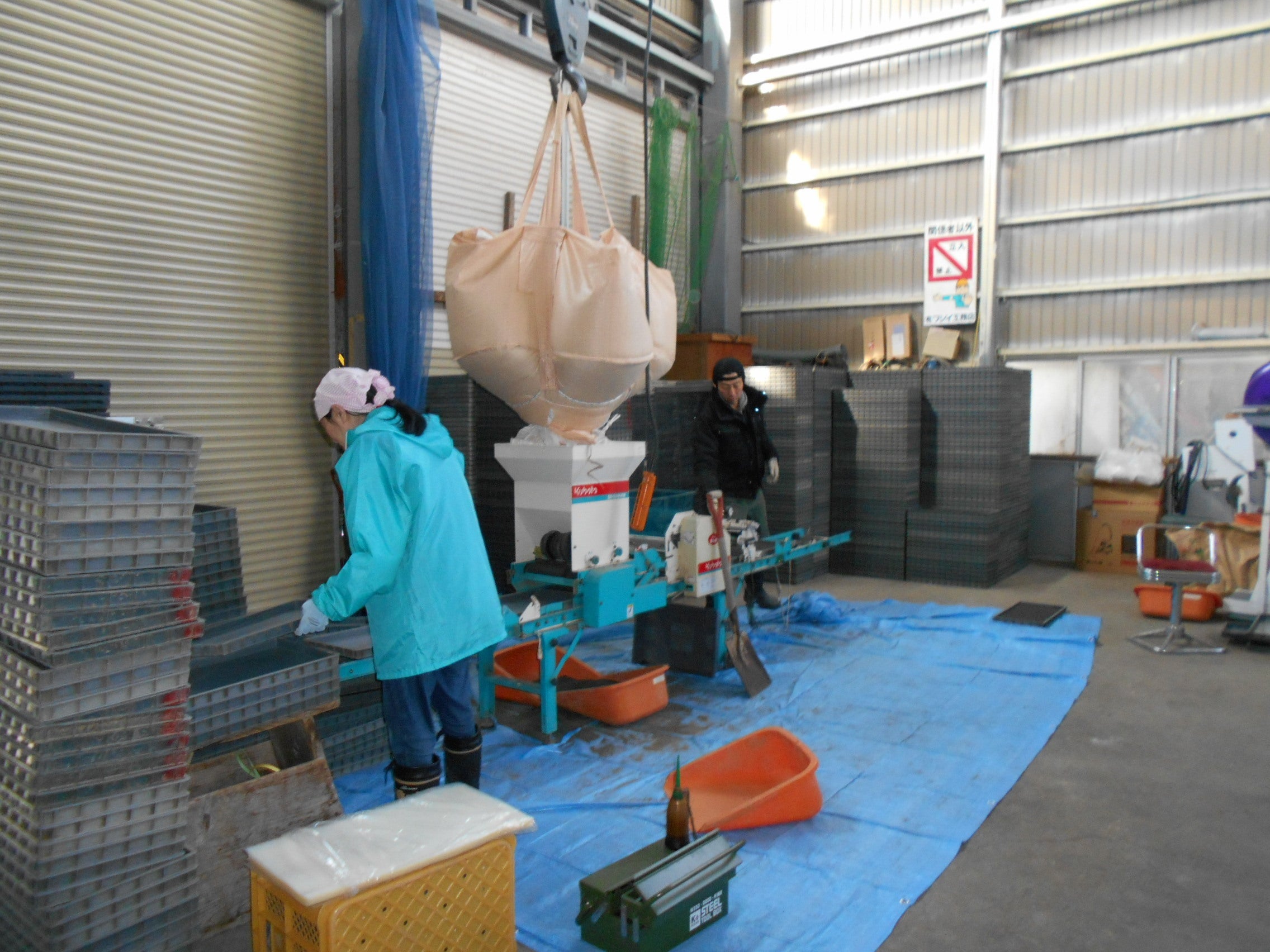 支援ありがとうございます。水稲の育苗作業の一つの育苗箱に床土入れしました。娘も手つだいしています。4/20~22まで播種します。水田の仕事におわれています。