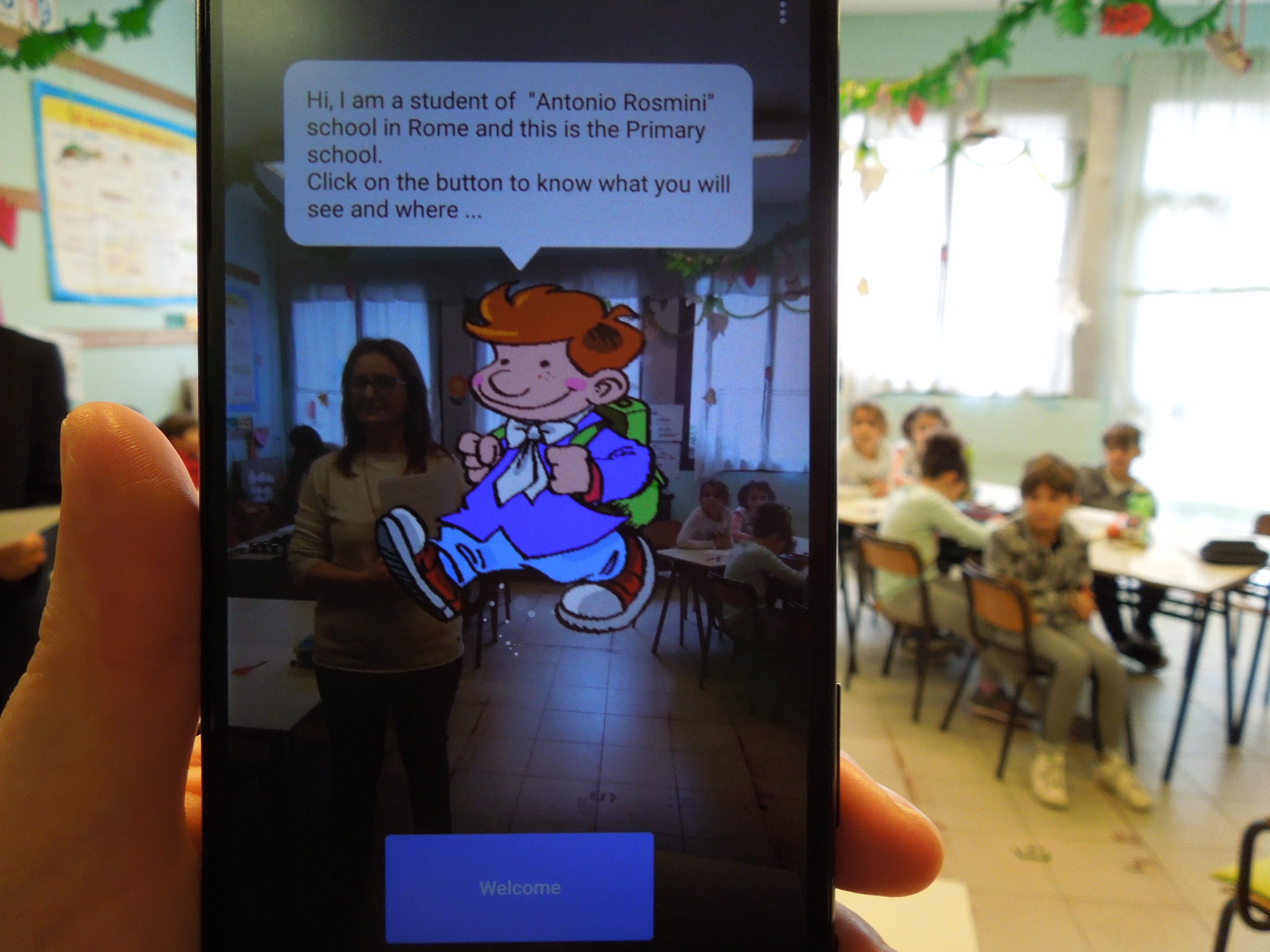小学校の専用アプリ(かざすとクラスの説明が現れる)