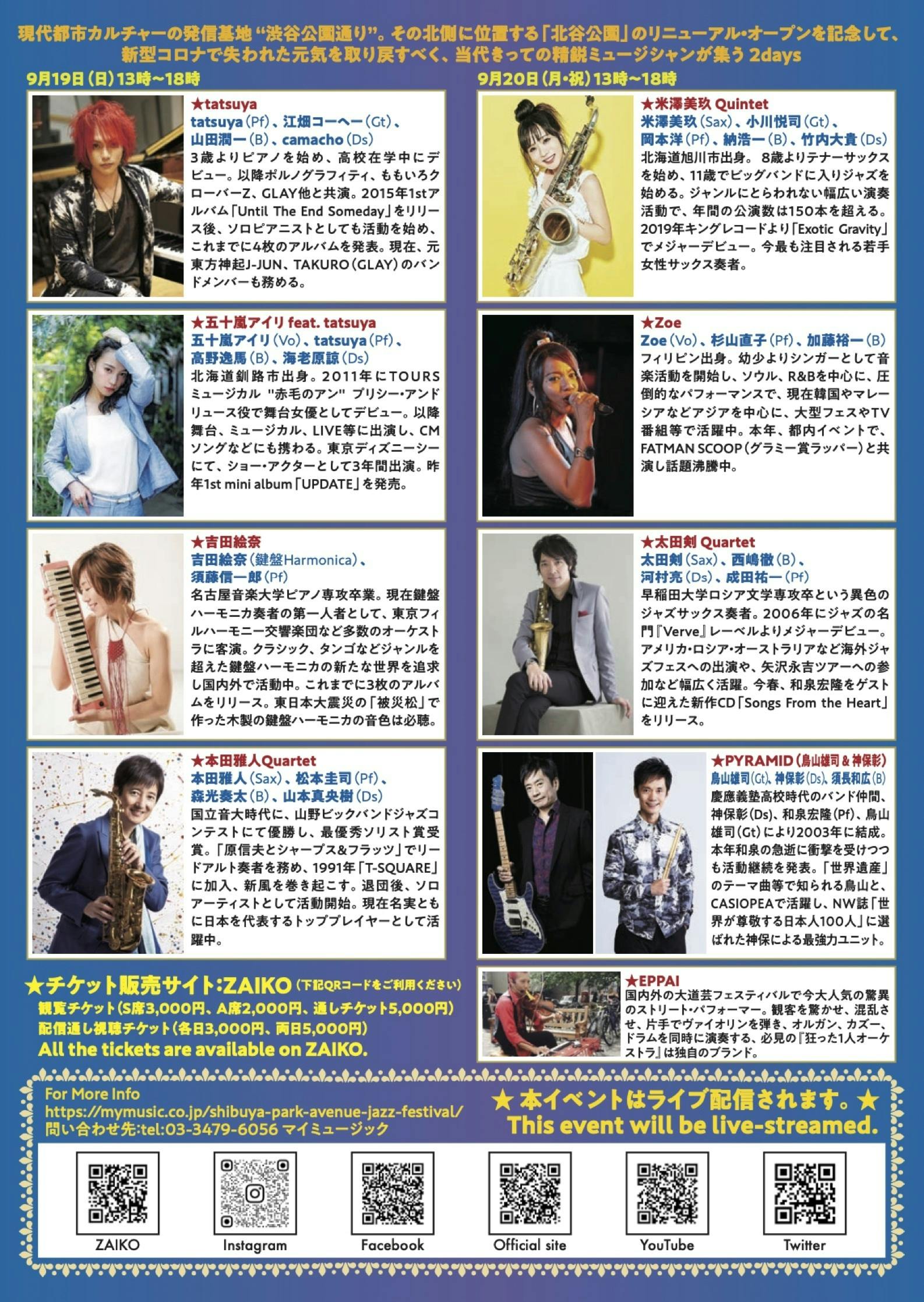 9月19日,20日開催『渋谷パーク・アべニュー・ジャズ・フェスティバル2021』詳細発表のご案内