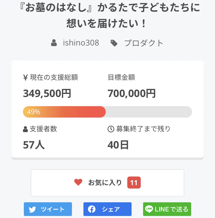 プロジェクトのご支援、本当にありがとうございます。おかげさまで、目標金額の半分までもうほんの少しのところまで到達しています。