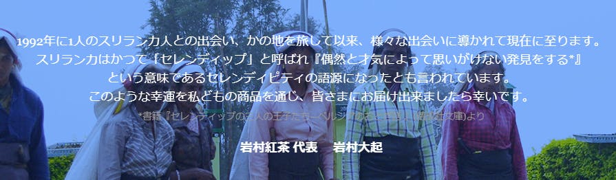 岩村紅茶は、2000年の創業以来、主にスリランカ産の高品質な紅茶、ハーブ、食品を取り扱っております