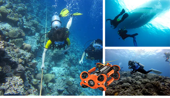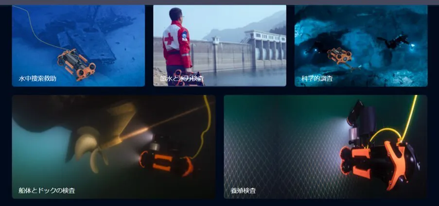 ・水中での確認作業を軽労化できたり、人間による潜水に比べ長時間潜らせることができるため作業効率がよく、潜水事故の危険性が低くく安全性の確保。