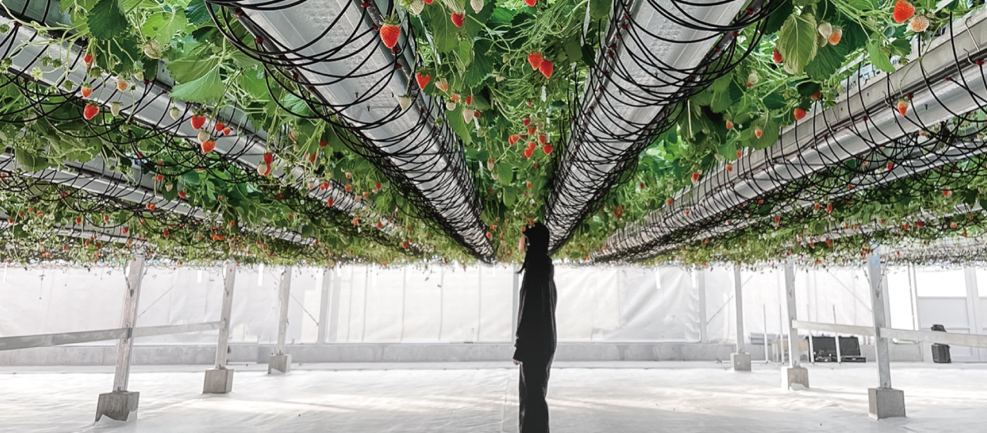 ととりべファームではハウス全体をコンピューターで制御。安定して高品質のイチゴをお届けできるよう、最新技術を使用して細かく品質や生産の管理を行っています。そうしたテクノロジーと、農家さんによる一粒一粒丁寧に育てる情熱がいちごの美味しさの秘密です。空中イチゴ狩り施設もオープン。