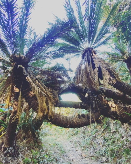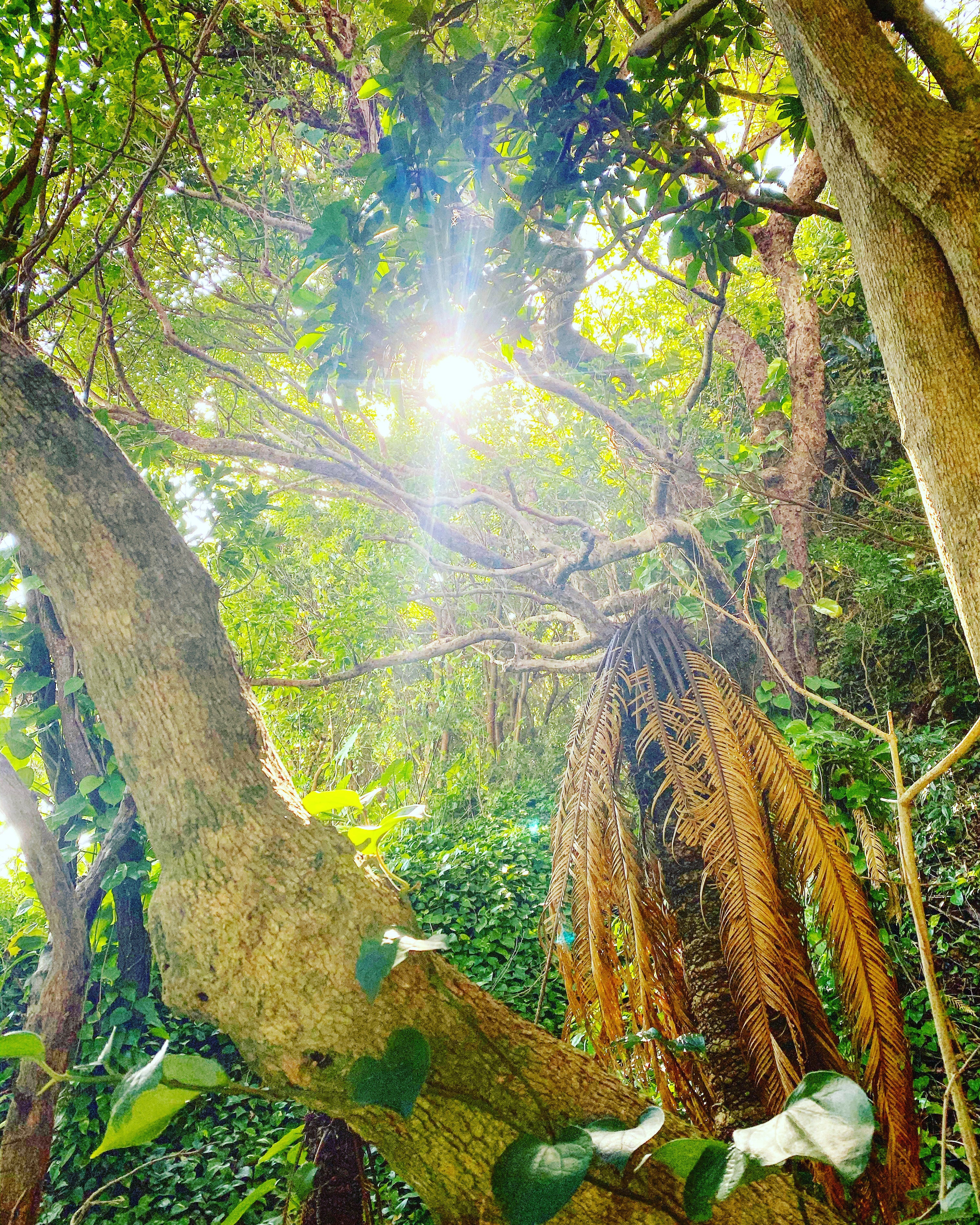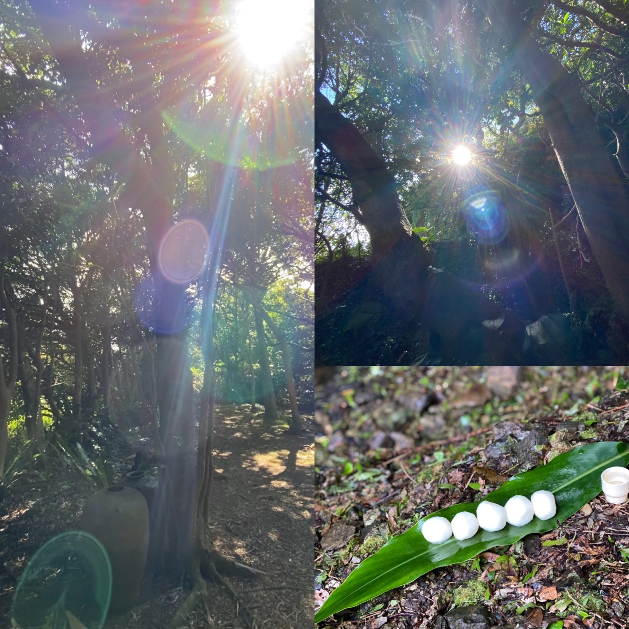 『神のお宿』敷地内から夜差家本家敷地内へ繋がるカミミチの御山へ上がる入り口付近で許可を得て撮影させて頂いた写真です。神山の守護者ハブ(蛇)が出ると言われていたり、氣が流れている場所のため普段誰でもが無闇に立ち入ることは禁じられいる神聖な場所(エリア)となります。(下写真)
