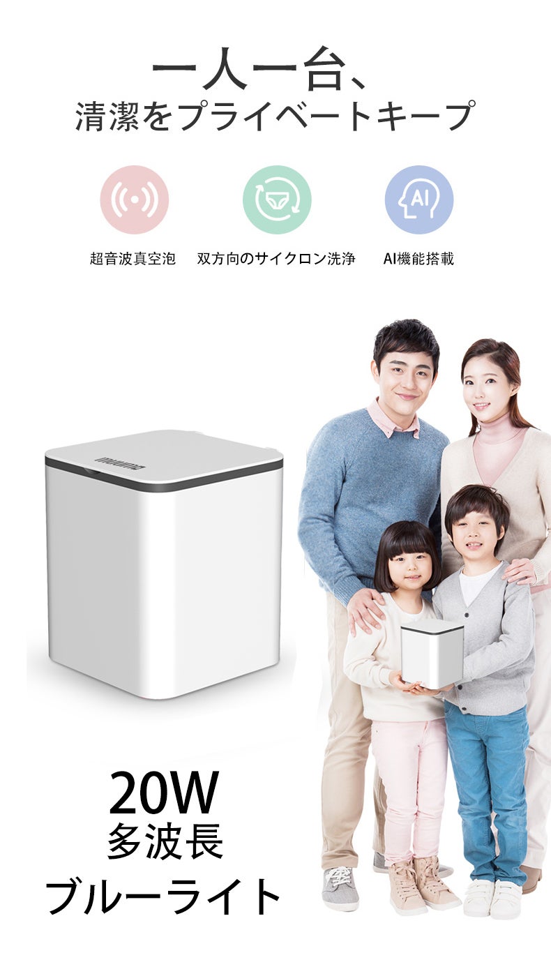 従来の水の勢いや圧力で汚れを落とす洗濯機とは、全く異なる洗浄方式を採用しているのがポイント。本体の重さはリモコンを含めても約750gと軽量なため持ち運びもラクチン。旅行や出張などの出かけ先でも、気軽に衣服を洗濯できます。
