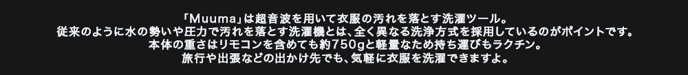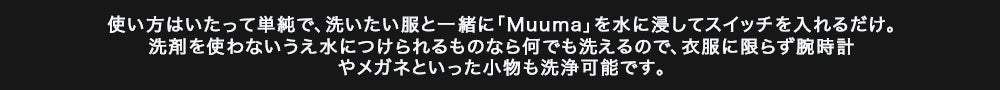 「Muuma」は超音波を用いて衣服の汚れを落とす洗濯ツールです。