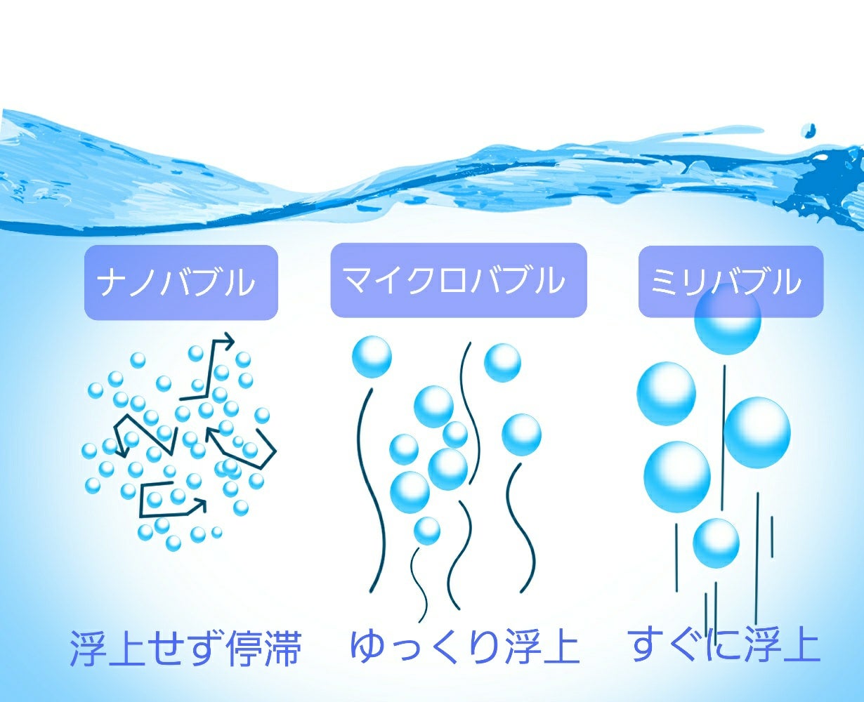 ナノバブルとは1マイクロメートル(0.001mm)未満の微細な気泡のことを言います。
