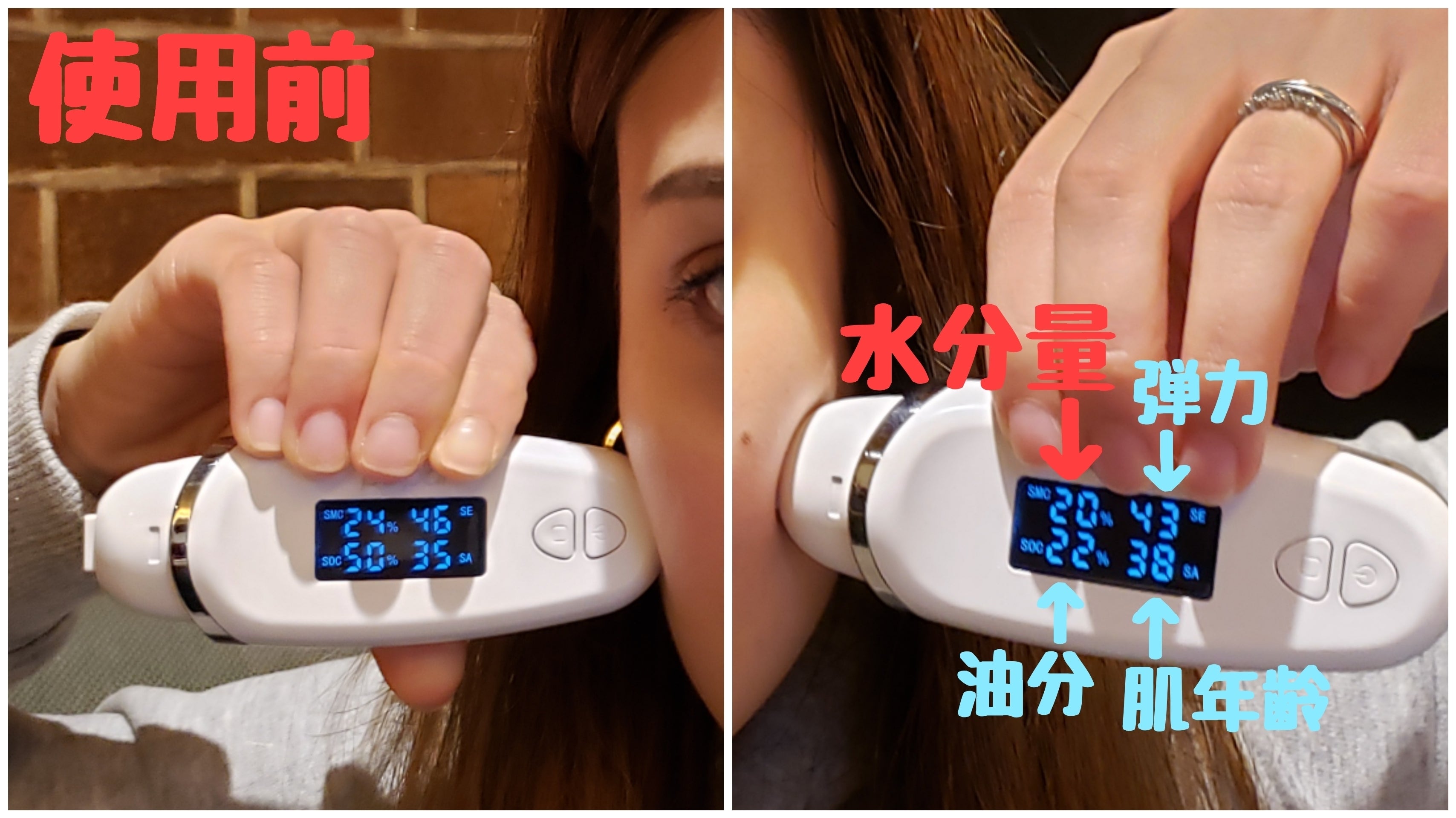右側にトゥールビヨンありのスプレーで普段通りに化粧水をお肌にたっぷりなじませてもらいました。