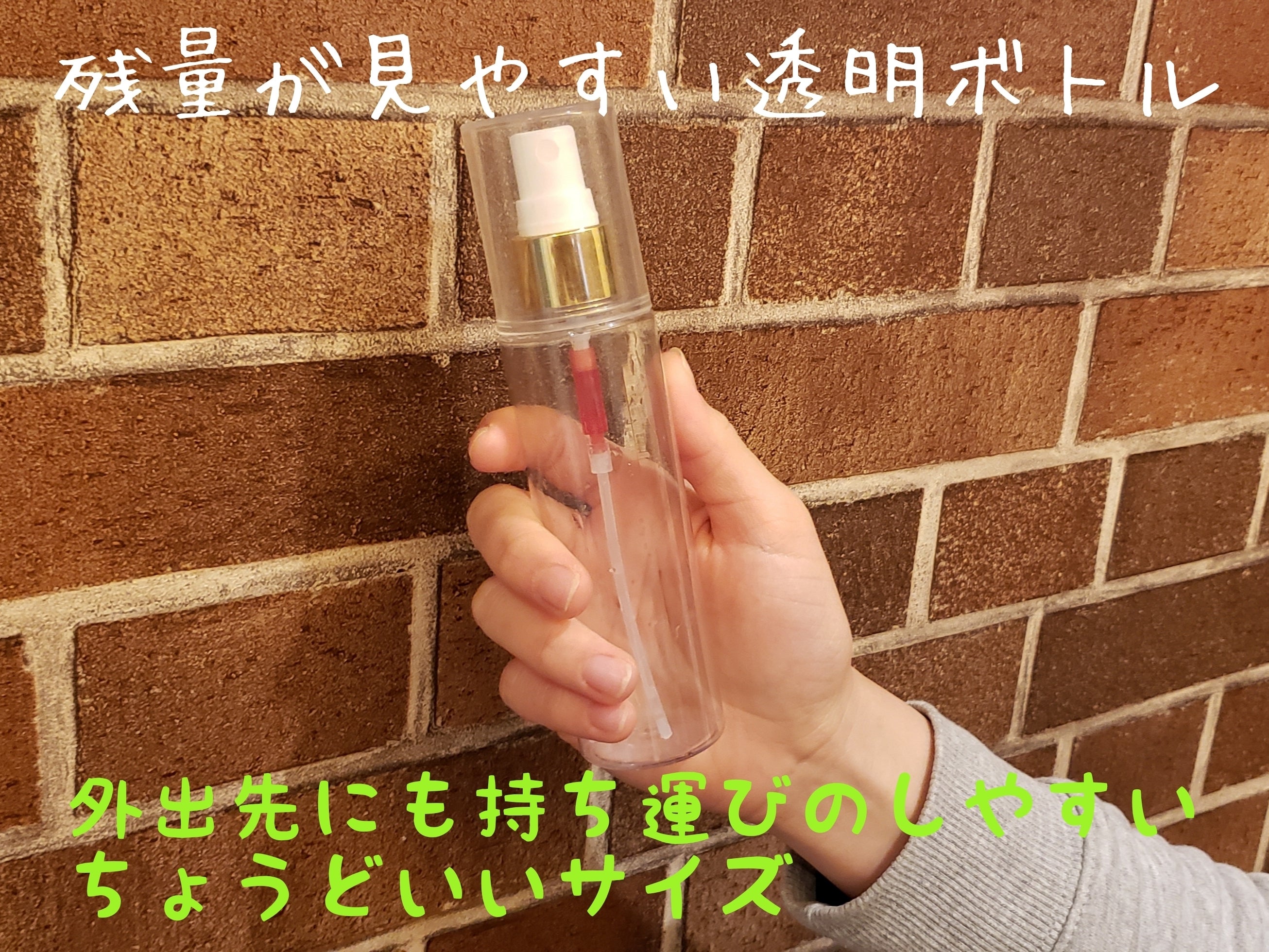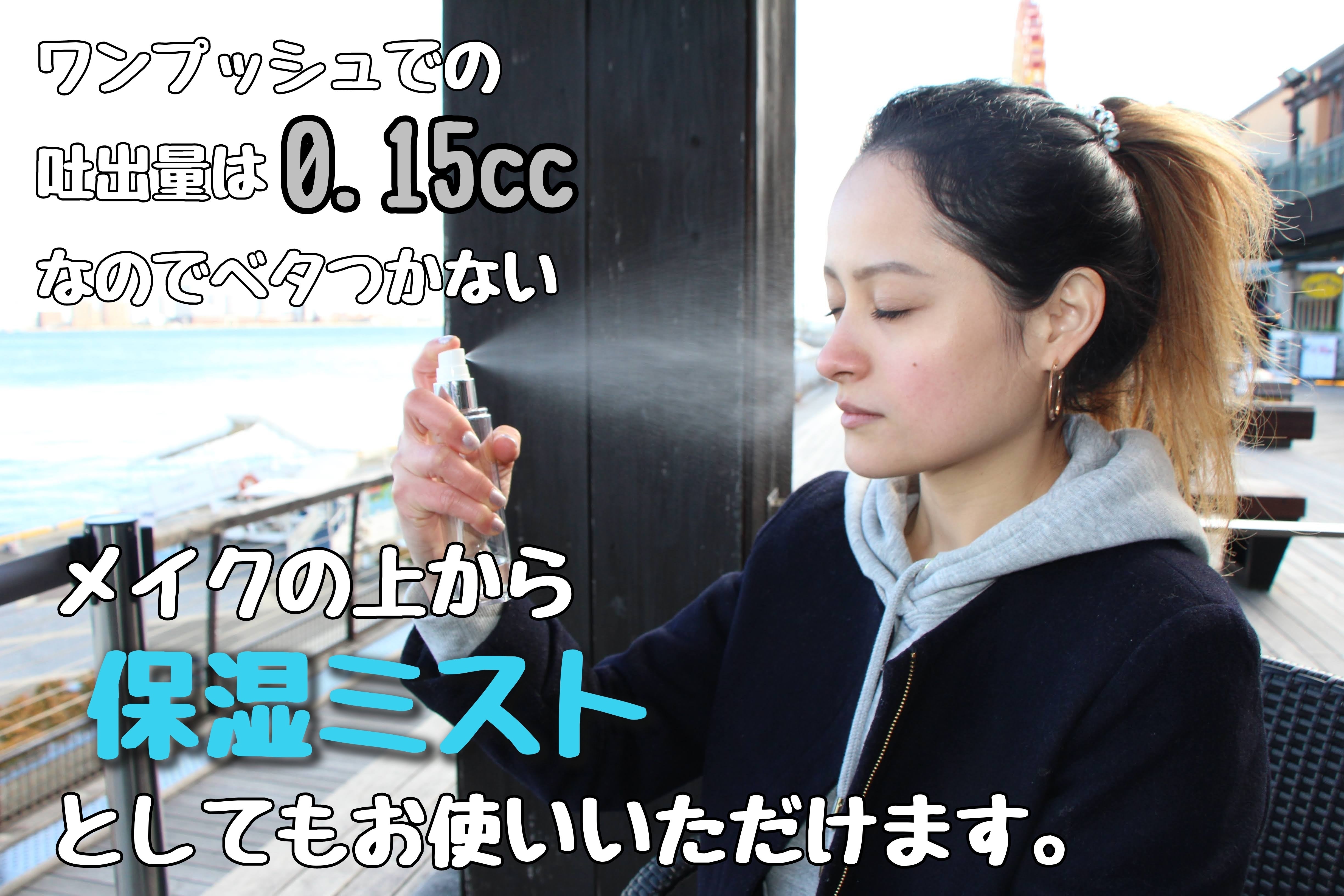 ・とろみのある化粧水の場合、うまくスプレーできないことがありますので水タイプの化粧水をオススメいたします。
