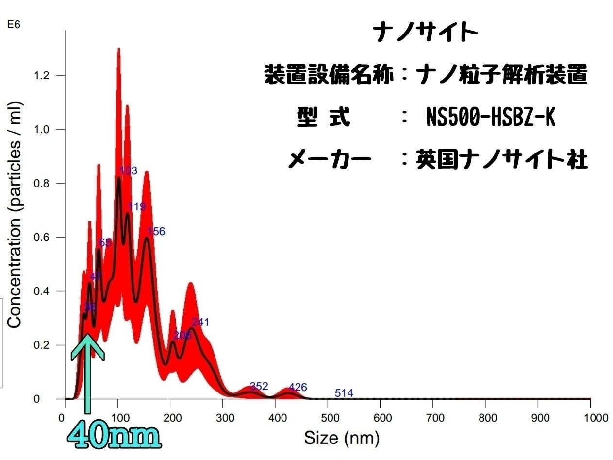 家庭用では100nm程度の生成が一般的とされていたナノバブルを