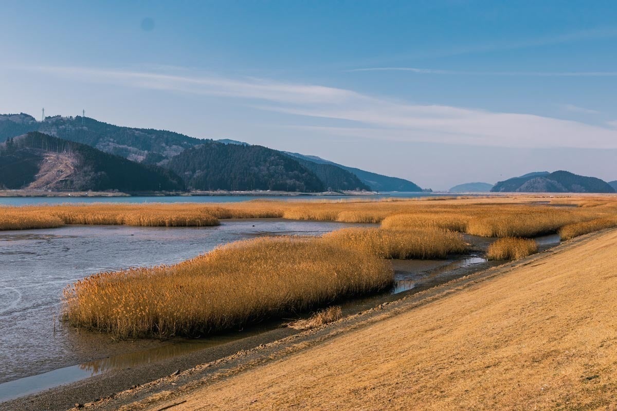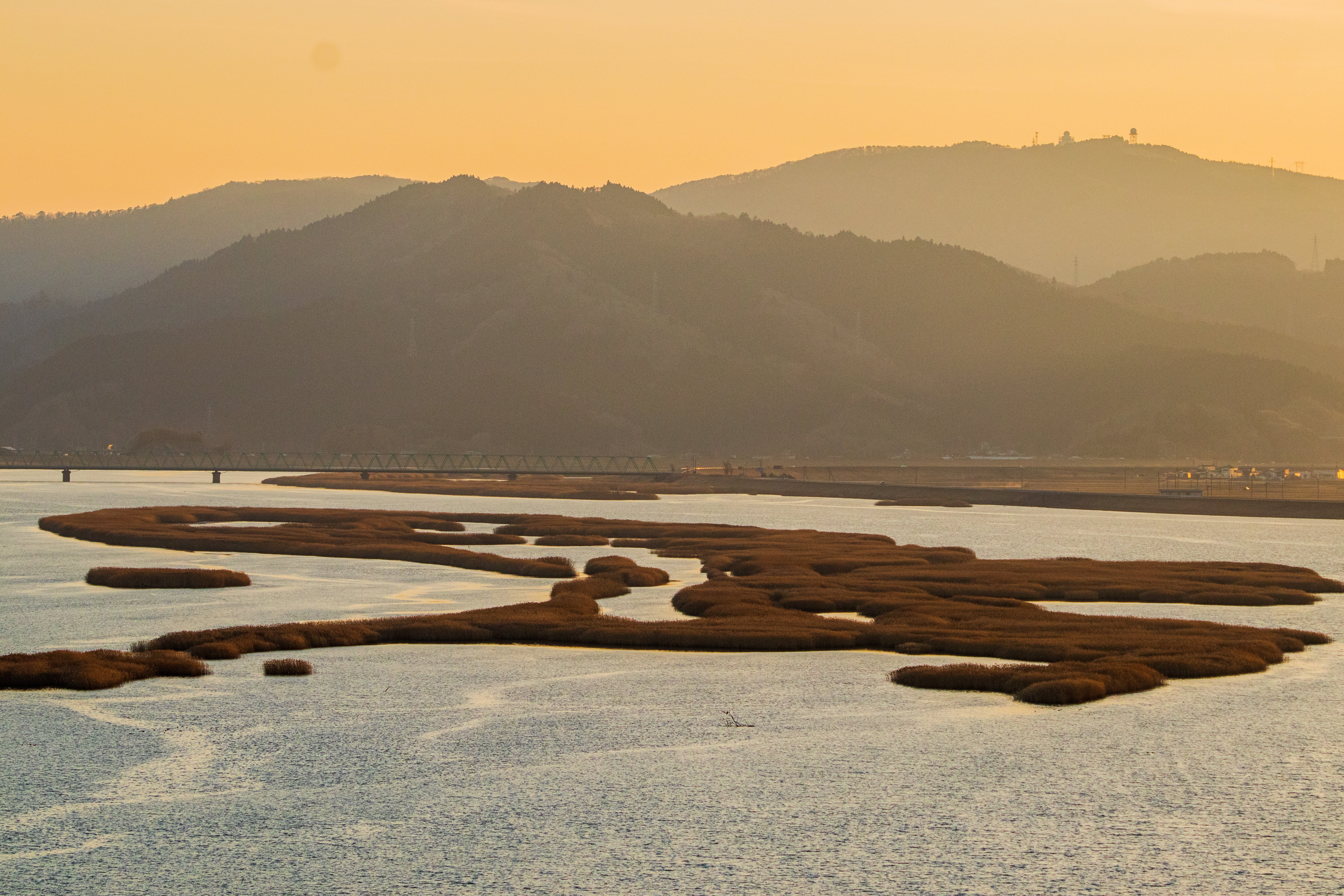 宮城県の東端に位置する石巻市北上町は、仙台から車で約90分。東北一の大河が滔々と流れる河口の町です。北上川には日本有数のヨシ原が広がり、そのヨシ原を海から吹く風が鳴らすさざめきは、「日本の音風景百選」にも選ばれています。