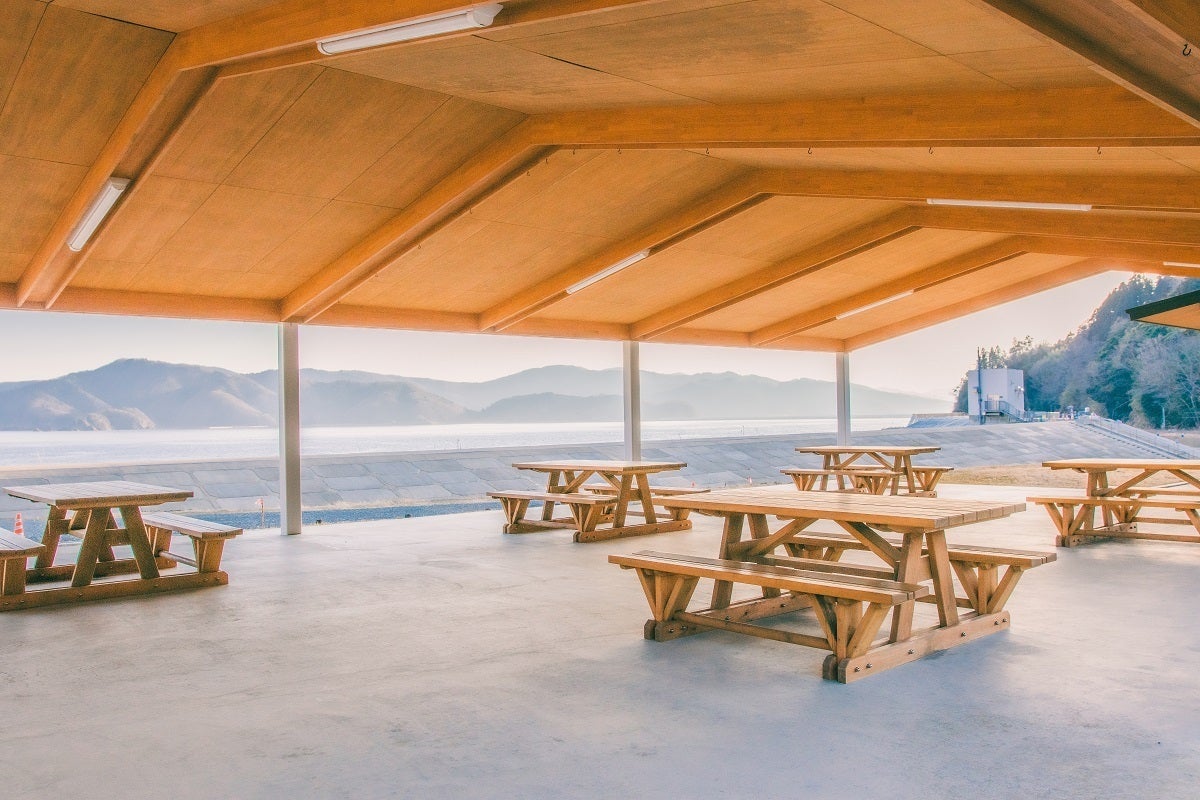 「追波湾テラス」は海を臨む高台に位置し、自然に囲まれた道に沿ってビーチまで徒歩10分。ビーチにはバーベキュー場があり、都会の喧騒を離れ、家族との食事を楽しむことができます。