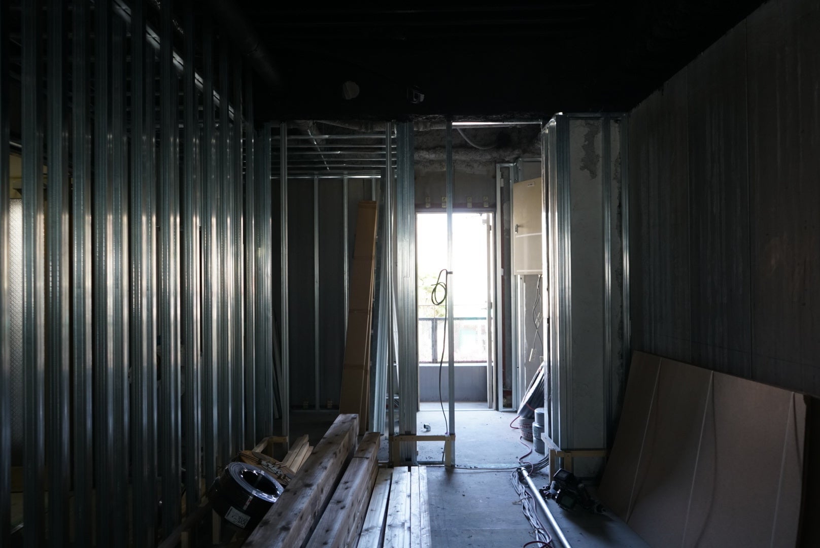 週末から壁の石膏ボード貼の工程に進むそうで骨組みはもう見えなくなるとのこと。空間の輪郭をよりリアルにお伝えできるようになるかと思います。