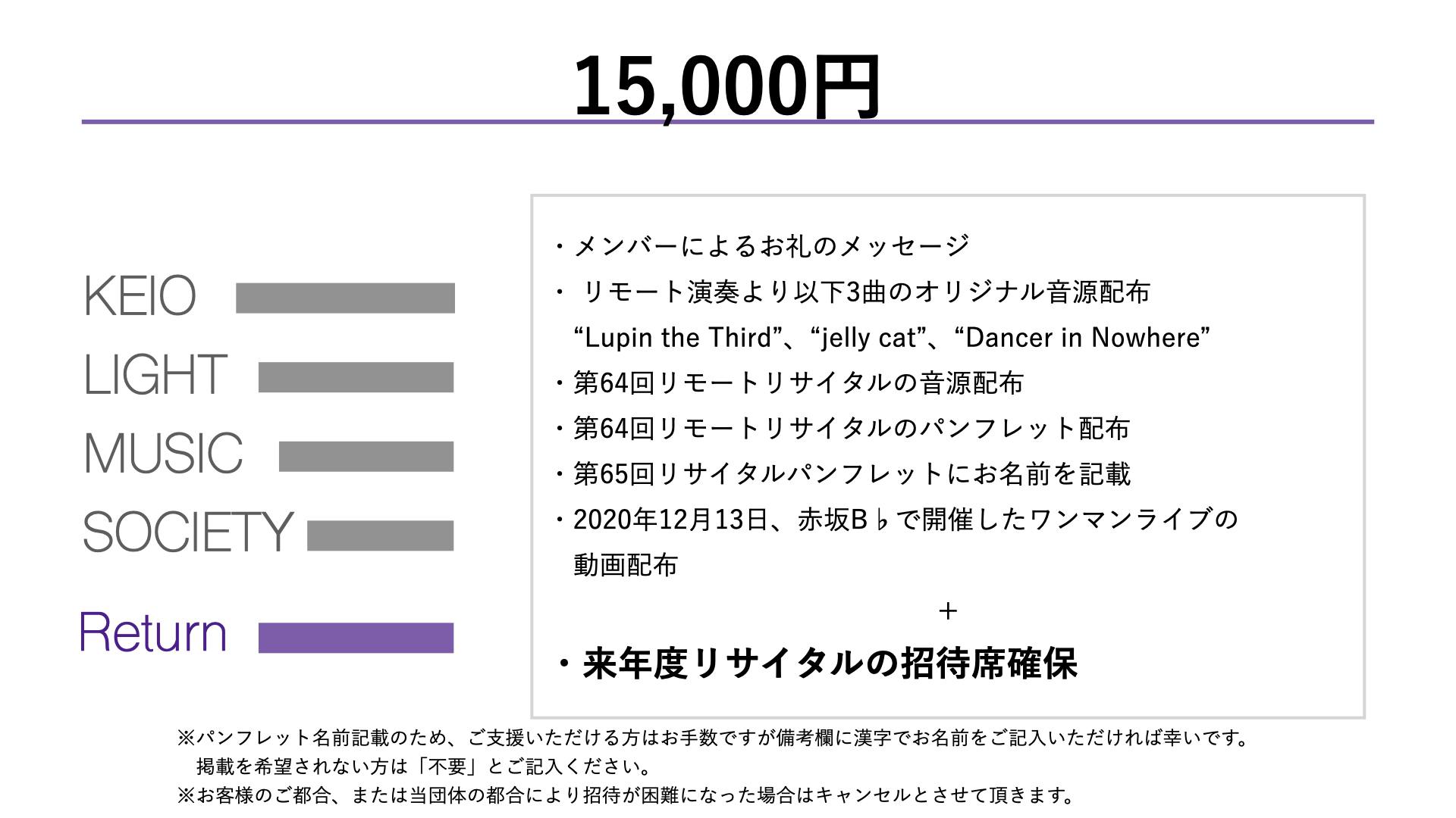 我々ライトは毎年頂いている多くの依頼演奏の収入を中心に演奏活動を続けてきました。しかし、今年度は新型コロナウィルスの影響により演奏活動が制限され、活動資金を得ることができませんでした。また3月28日に行われる第64回リサイタルは新型コロナウイルス感染拡大防止の観点より、ホールでの公演を取りやめ、リモート収録による配信で行う予定です。そのため例年の通常公演で得られる入場料などが得られず、今後の活動資金繰りが難しくなることが予想されます。