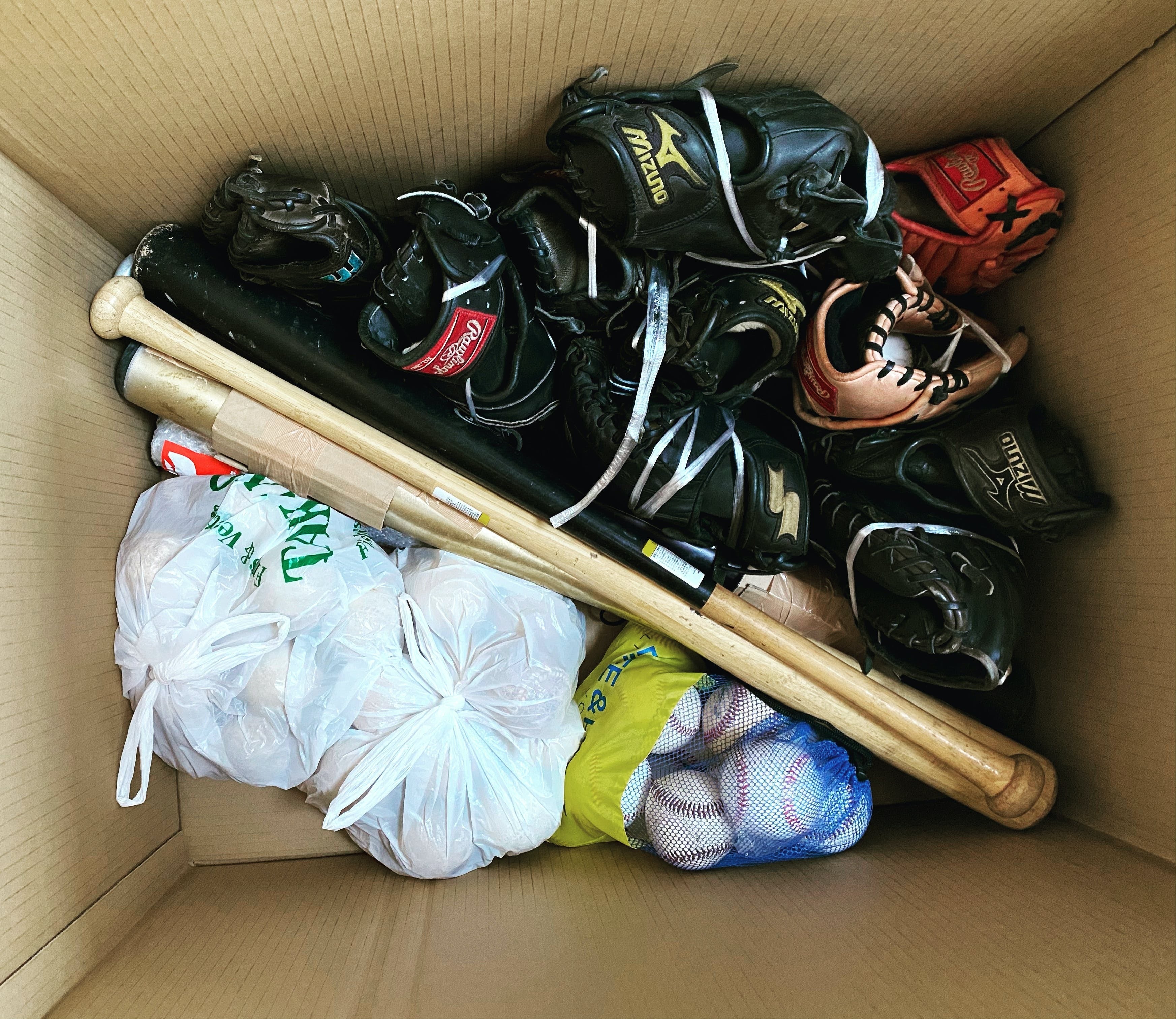 グローブ11個、バット7本、ボール73球、ユニフォーム5着