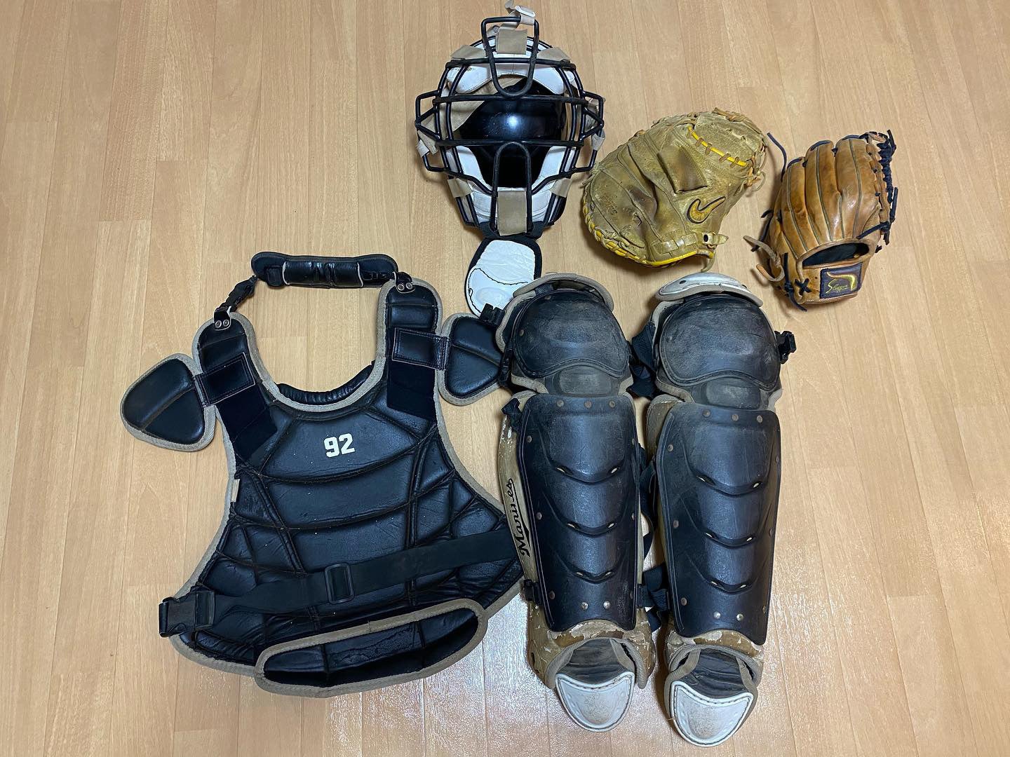 上写真は寄付して頂いたキャッチャー防具とグラブ2つ。