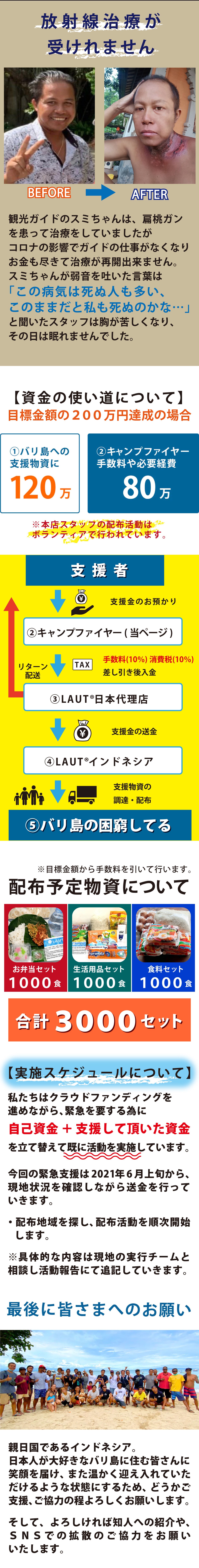 2021/10/28 11:04集まった支援金をつかい、バリ島内のサヌール、デンパサールエリアへ支援物資を届けました。今回の支援活動はバリ島のサーファーであるカイナ君がボランティアで駆けつけてくれました。引き続き、皆様から預かった支援金で配布活動をしていきます。バリ島の今後やLAUTの支援活動を温かく見守っていただけると嬉しいです。ご支援ありがとうございました! もっと見る
