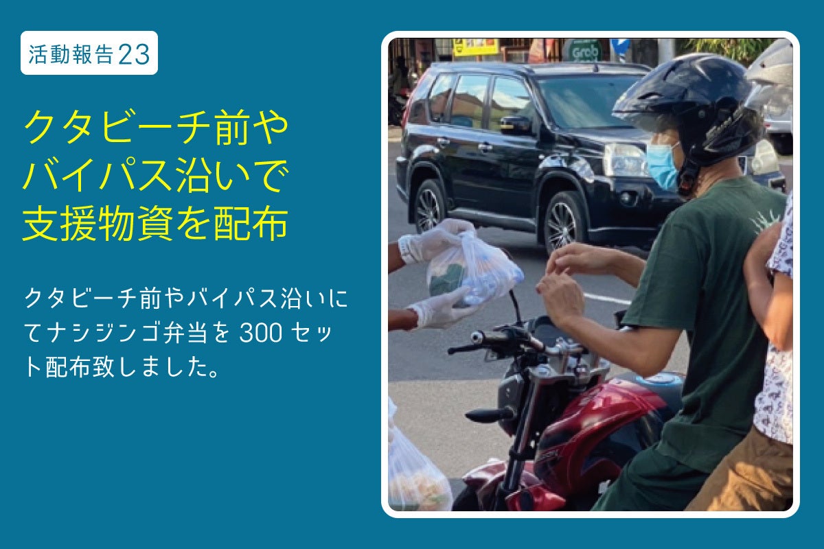 【活動報告23】クタビーチ前やバイパス沿いにてナシジンゴ弁当を300セット配布致しました
