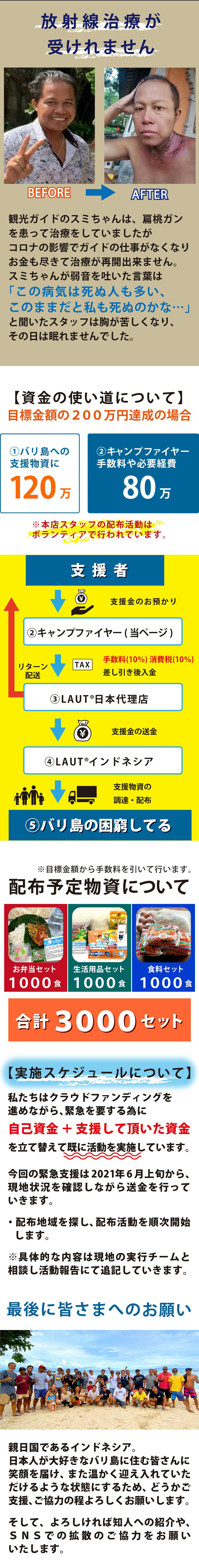 2021/12/10 16:28集まった支援金をつかい、バリ島内のクタビーチ前やバイパス沿いにてナシジンゴ弁当を300セット配布致しました。子供連れのお母さんや、配達の仕事をしている方、リサイクルゴミを集めている方など、たくさんの方々へ支援できました。 引き続き、皆様から預かった支援金で配布活動をしていきます。バリ島の今後やLAUTの支援活動を温かく見守っていただけると嬉しいです。ご支援ありがとうございました! もっと見る
