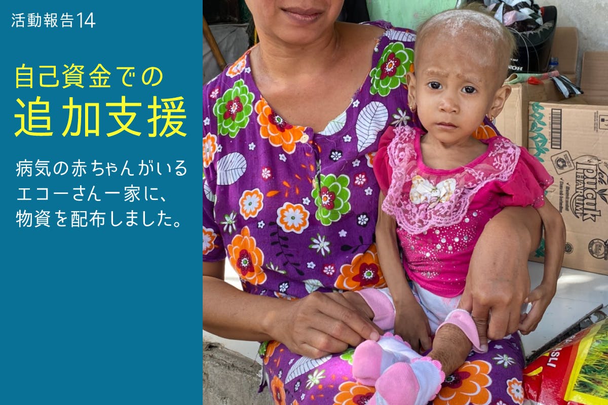 エコーさん家族へ、自己資金にて追加支援の配布をしました。まだまだ赤ちゃんは痩せて見えますが、前回より体重が少し増えました。