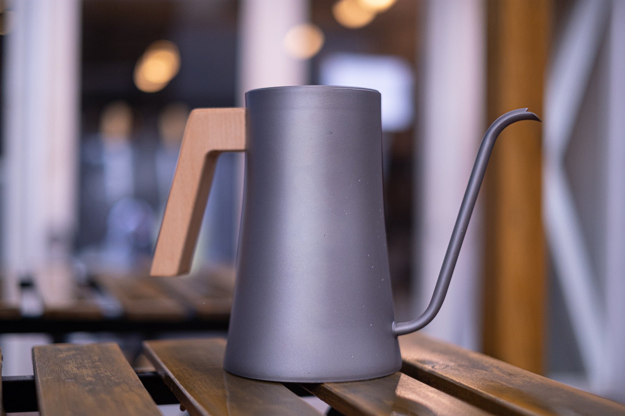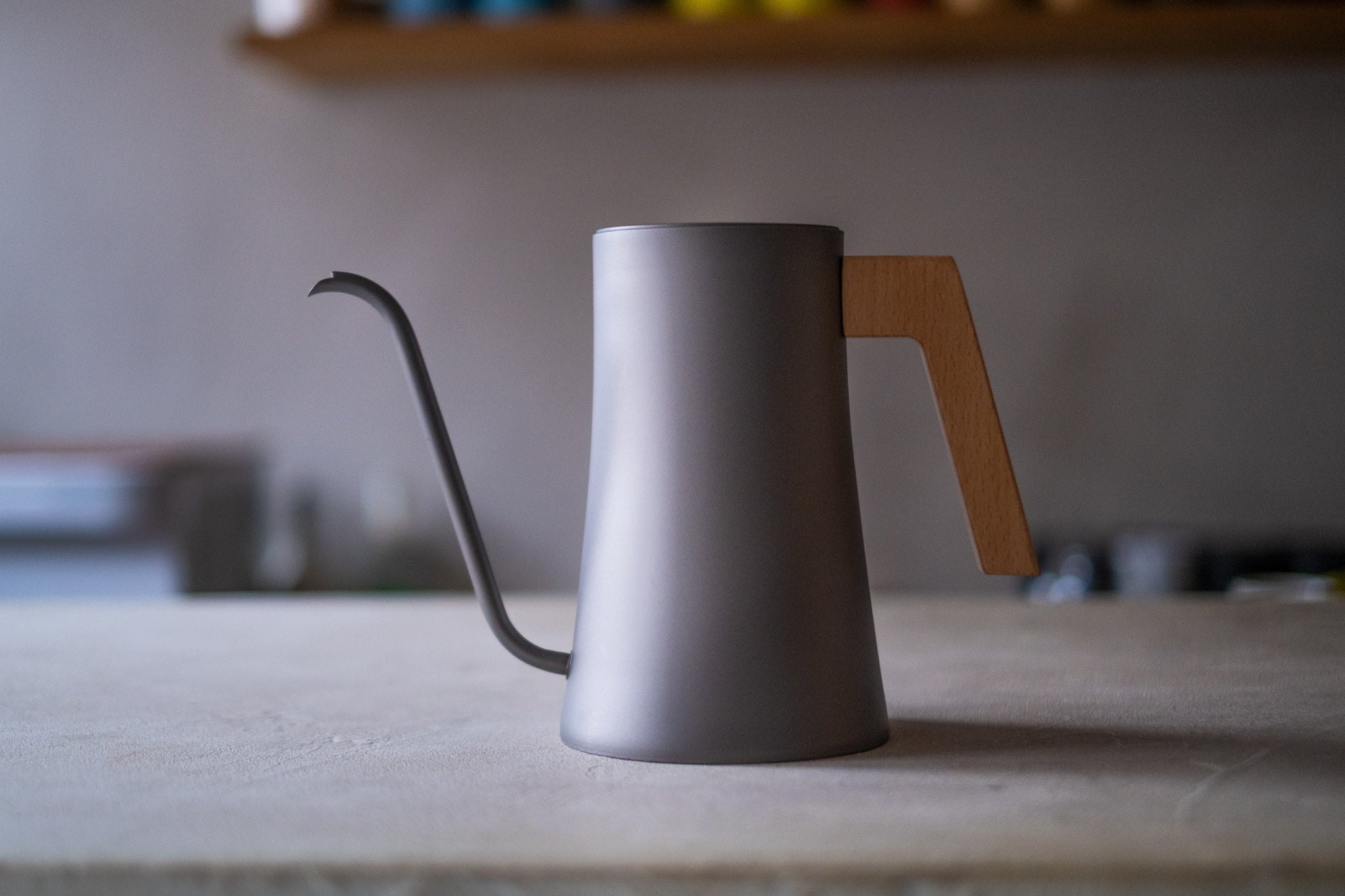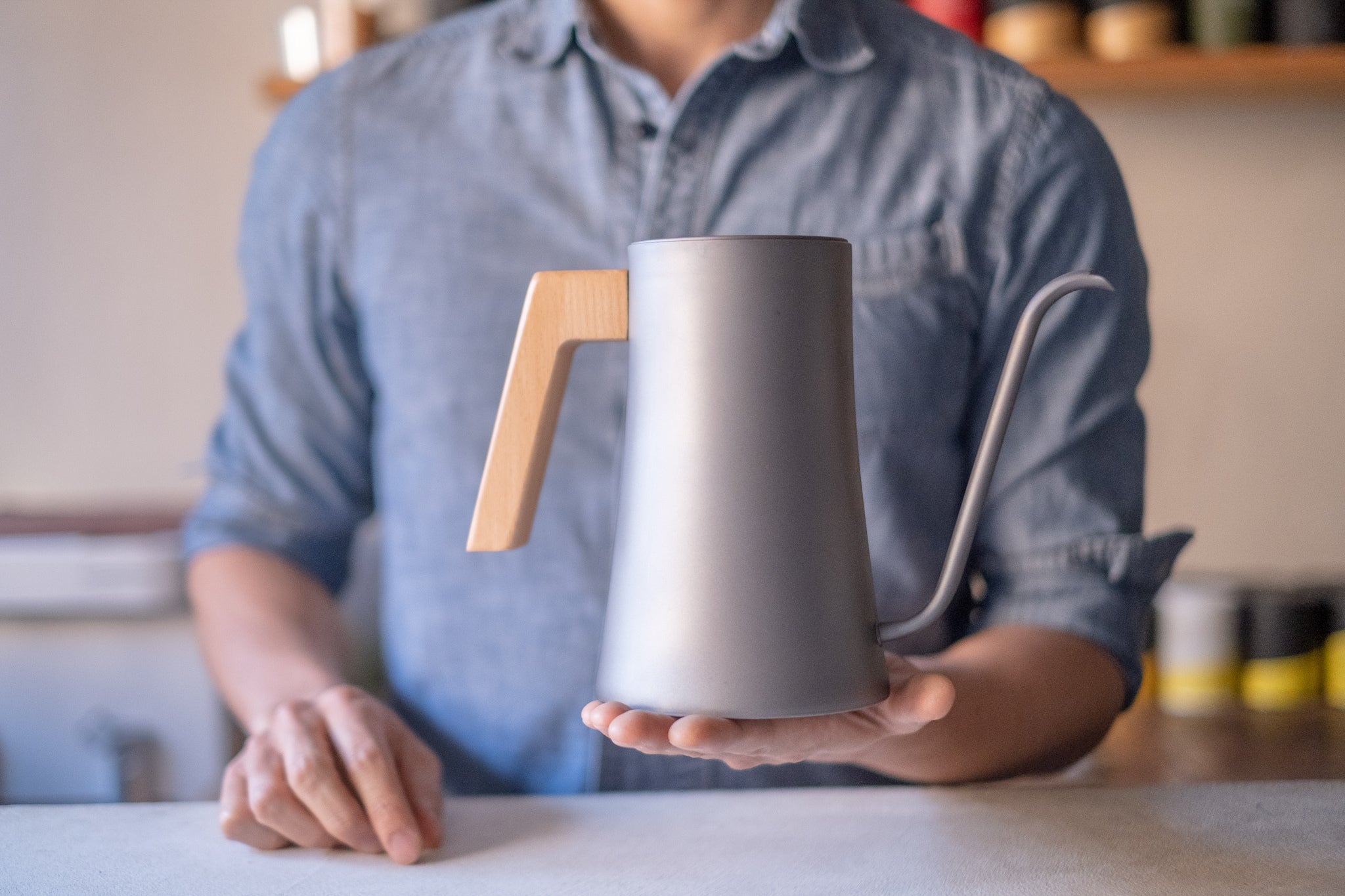 ハンドル部分にはブナ材を使用し、無機質になりがちな金属素材に木材の温かさをプラス。ケトルの熱を伝えないのはもちろん、自然と手に馴染むデザインです。