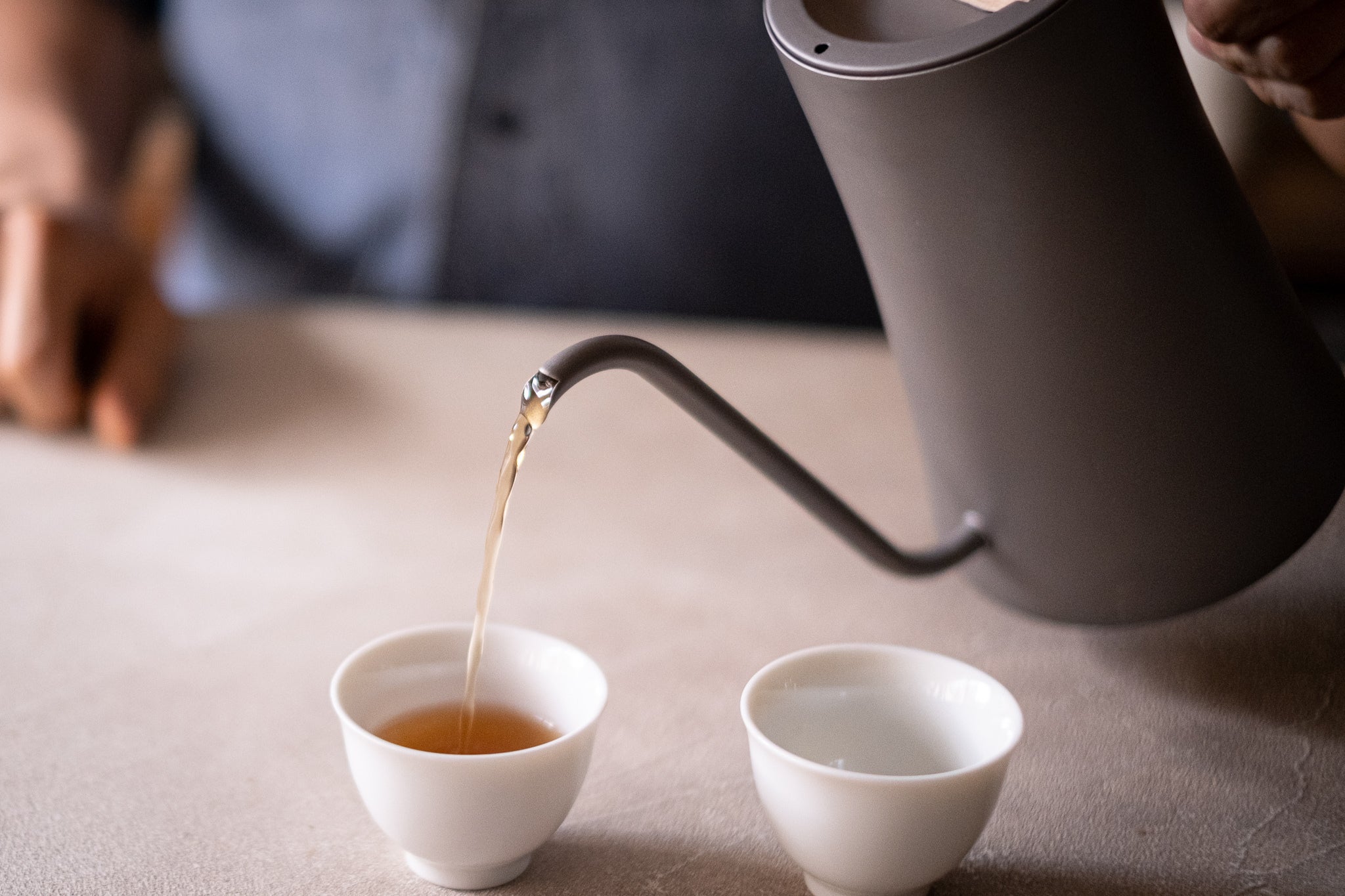 「FLOW」にはオプションでチタン製ストレーナーが選べます。コーヒー用のドリップケトルが、ストレーナーとセットでお使いいただくことで、ティーウェアとしてもお使いいただけます。