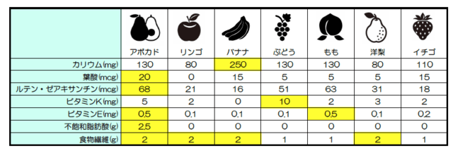 アボカドは一人分あたりの該当栄養素が特に多いフルーツ!