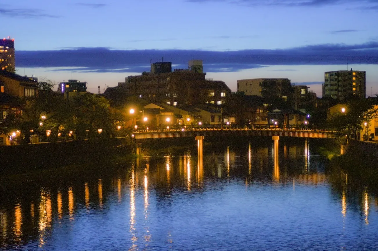 金沢市のひがし茶屋街のほとりにある浅野川の夕景です。