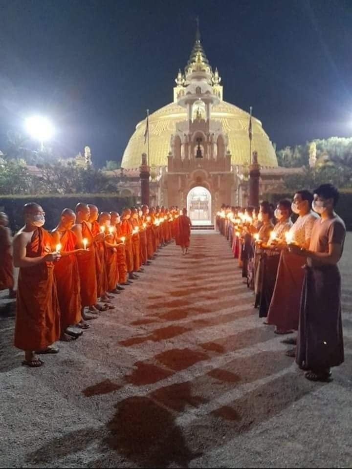 添付の写真は、シタグ世界仏教大学の僧侶が「早く暴力が止まるように」と祈りをささげているところです。鮮やかで荘厳で静謐。それがミャンマーのお寺のイメージで、ヤンゴンで地獄絵が繰り広げられていても、ここは以前のままです。