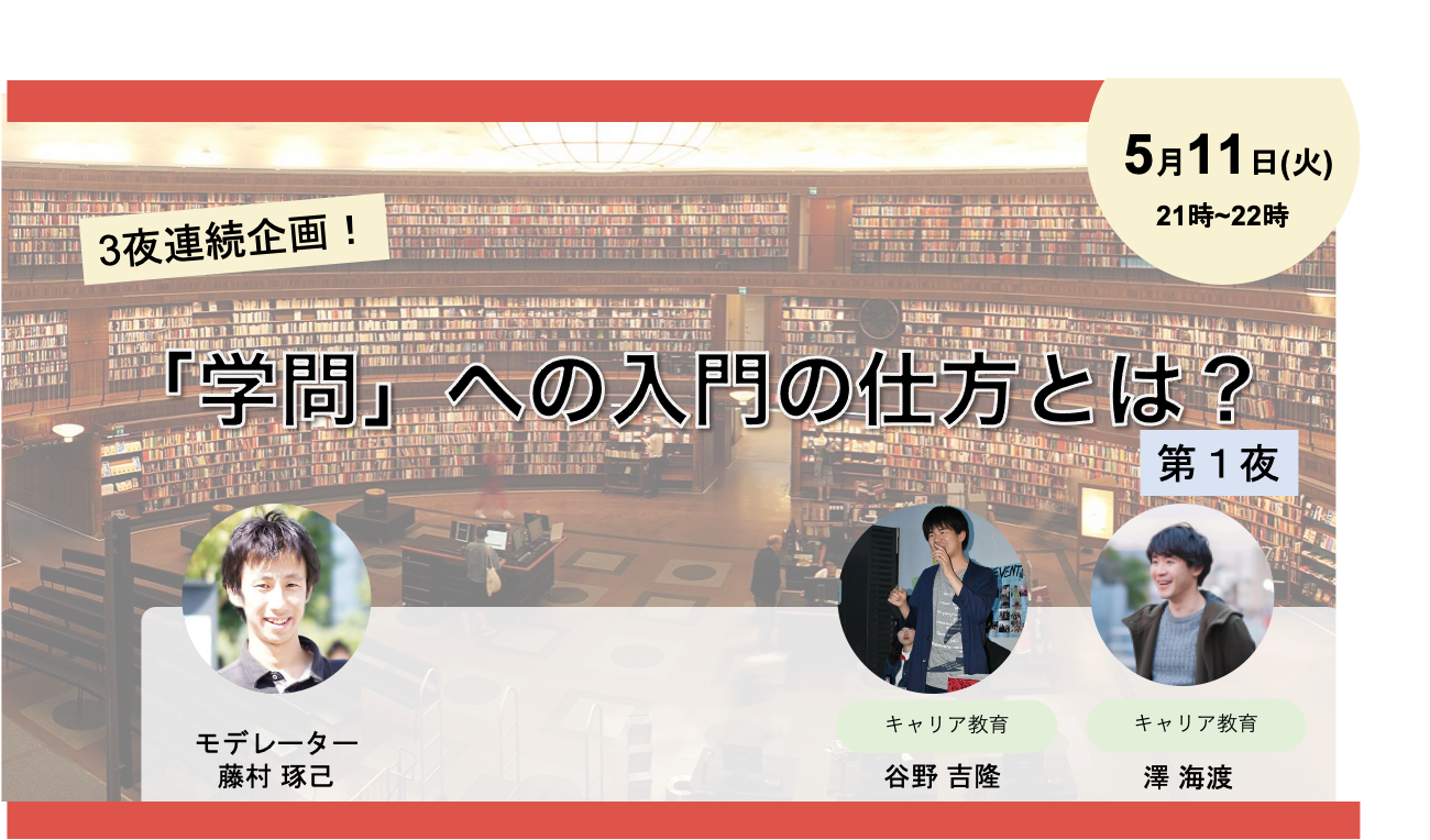 2021/05/10 20:54こんばんは。一般社団法人Foraの工藤です。クラウドファンディング終了まで残り5日となりました。これまでご支援いただいた皆様、本当にありがとうございます。ネクストゴール100万円達成に向け、引き続きサポートのほどよろしくお願いいたします。さて、明日から3夜連続で、終了直前のYouTube LIVEを実施いたします!今回のYouTube LIVEは、現在各教材を執筆しているメンバーが登壇し、現在作成中の教材についてや、これからどんな内容を盛り込んでいきたいか、また、教材を教育現場でどう活用してもらいたいかなどをお伝えします。ご支援を検討いただいている方はもちろん、教材を楽しみにしていただいている方にもお楽しみいただけるLIVEです。ぜひご覧ください!---------------------------------【第1夜 キャリア教育教材| 「学問」への入門の仕方とは?】2021年5月11日(火) 21:00~22:00モデレーター|藤村 琢己(一般社団法人Fora代表理事)教材執筆担当|谷野 吉隆、澤 海渡https://youtu.be/6s23Cwwffkg【第2夜 ファシリテーション教材|ファシリを言語化する】2021年5月12日(水) 21:00~22:00モデレーター|藤村 琢己(一般社団法人Fora代表理事)教材執筆担当|工藤 理世菜、安田 遥https://youtu.be/LzC_cy1kw-E【第3夜 探究教材|興味関心起点の、探究心を育む】2021年5月13日(木) 21:00~22:00モデレーター|藤村 琢己(一般社団法人Fora代表理事)教材執筆担当|澤 海渡、宇都 星奈https://youtu.be/d59fOi2JhWE もっと見る